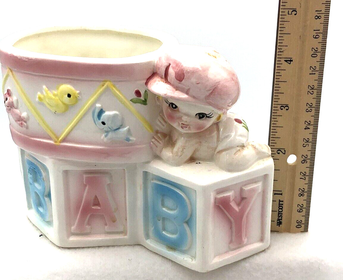 • Rubens Originals Baby Nursery Planter VTG Japan Pink/ Blue Baby Blocks