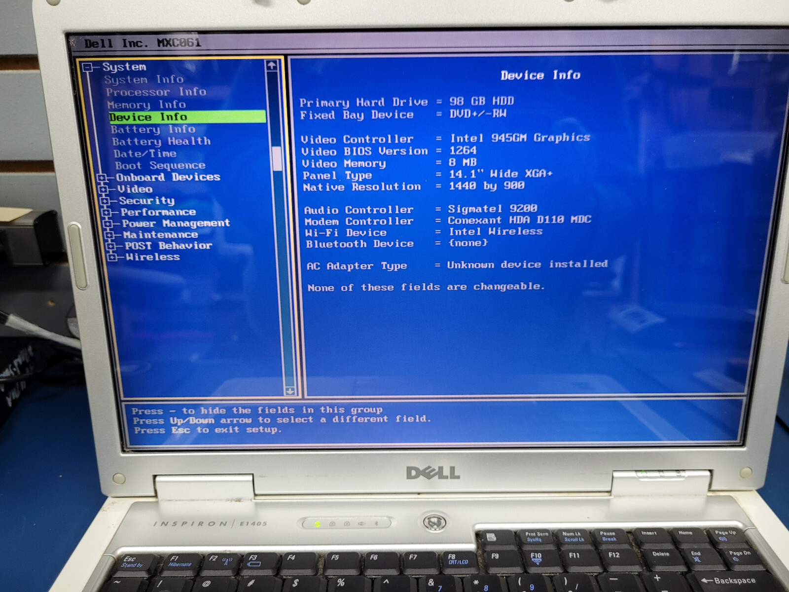 Dell Inspiron Laptop E1405 / Intel Duo Core 06E8 CPU 1GB RAM No HDD No Charger