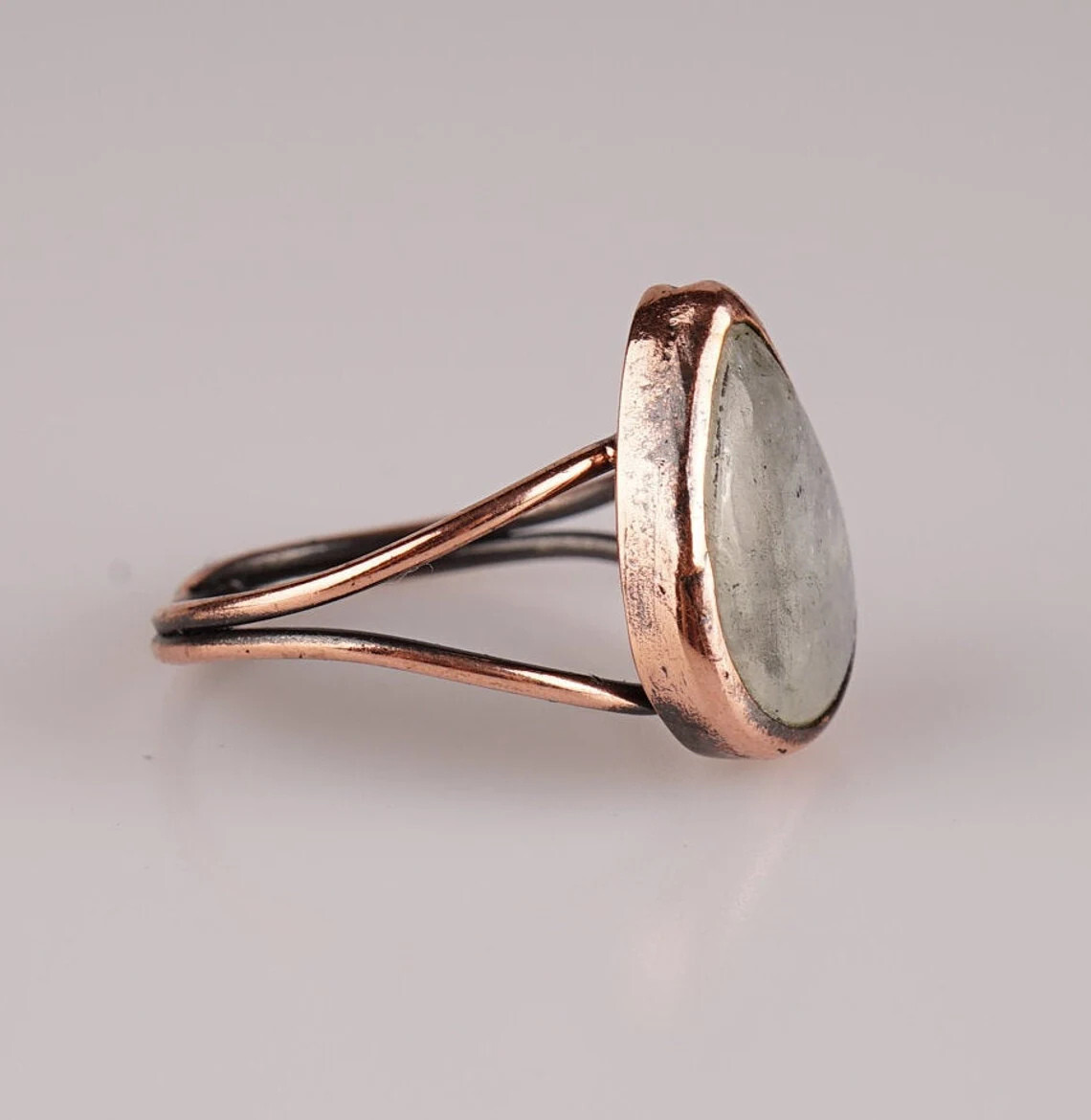 как выглядит Handmade Moonstone and Copper ring sz 6 1/4 Teardrop shape OOAK фото