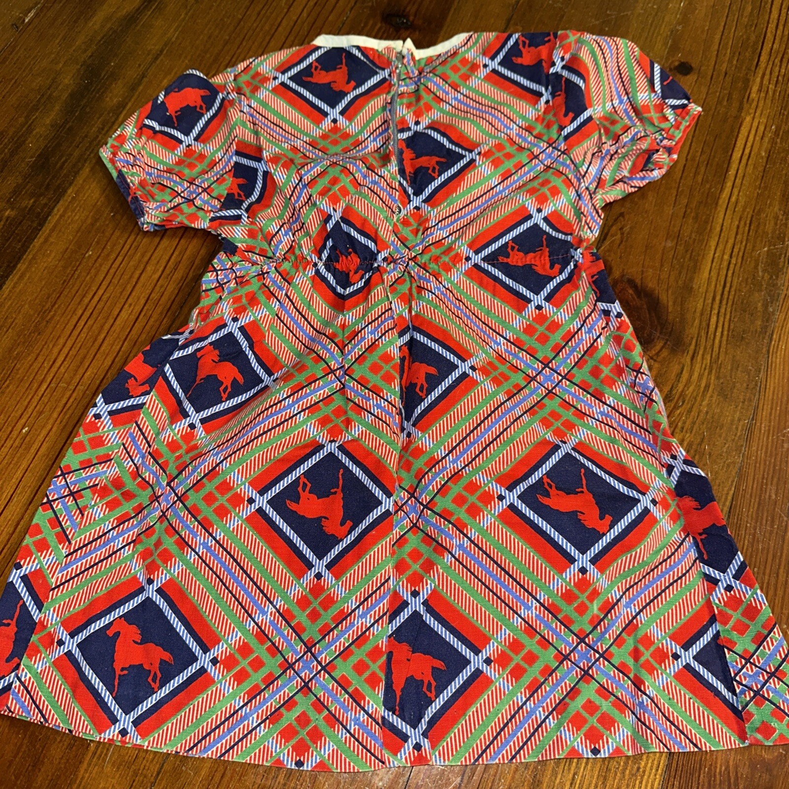 как выглядит Vintage Girls Montgomery Ward Dress No Size Horses Plaid фото