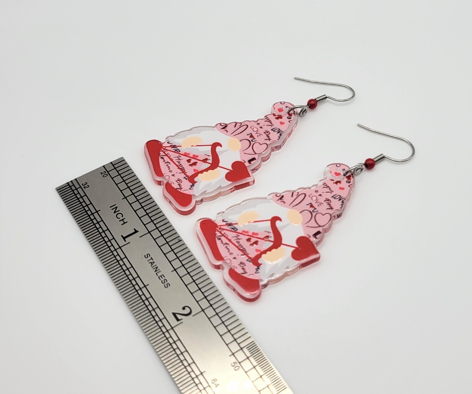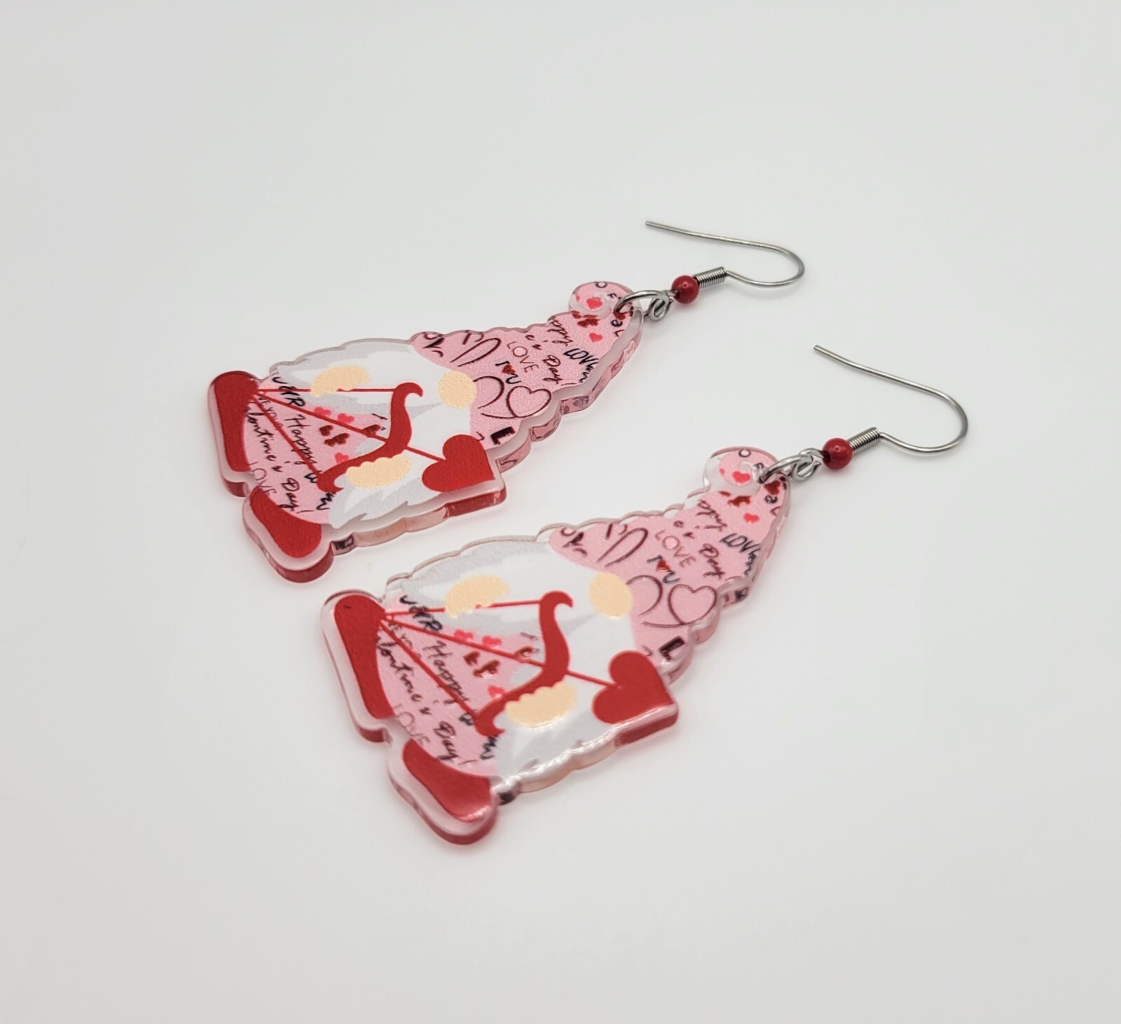 Valentine's Cupid Gnome Earrings, Women's Holiday Fashion