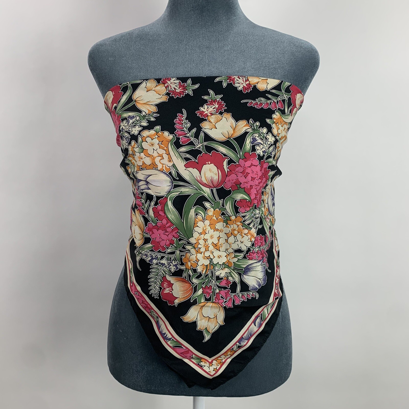 Vintage 27 Square Scarf Black Pink Gold Floral Polyester Scarf