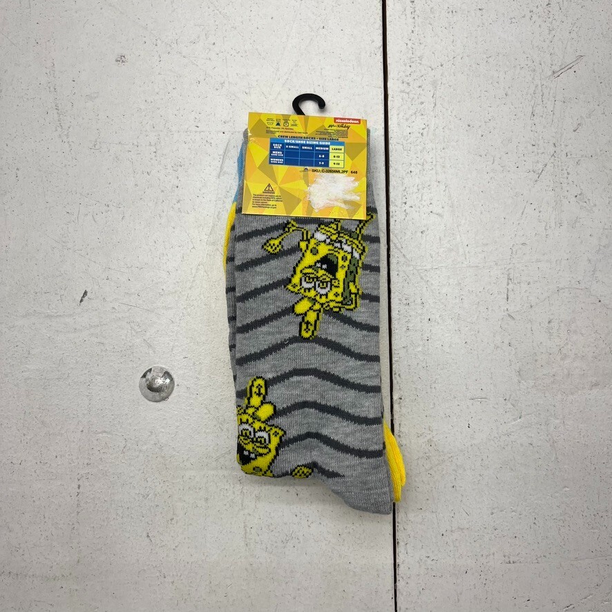 Nickelodeon Yellow SpongeBob Squarepants Print 2 Pairs Crew Socks Adult Size L