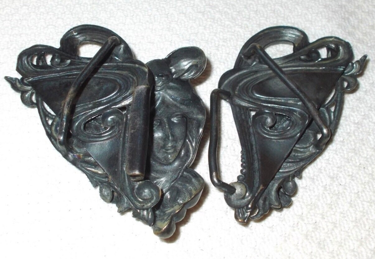 Antique 20s Art Deco Art Nouveau Heart Victorian Lady Goddess Belt Buckle