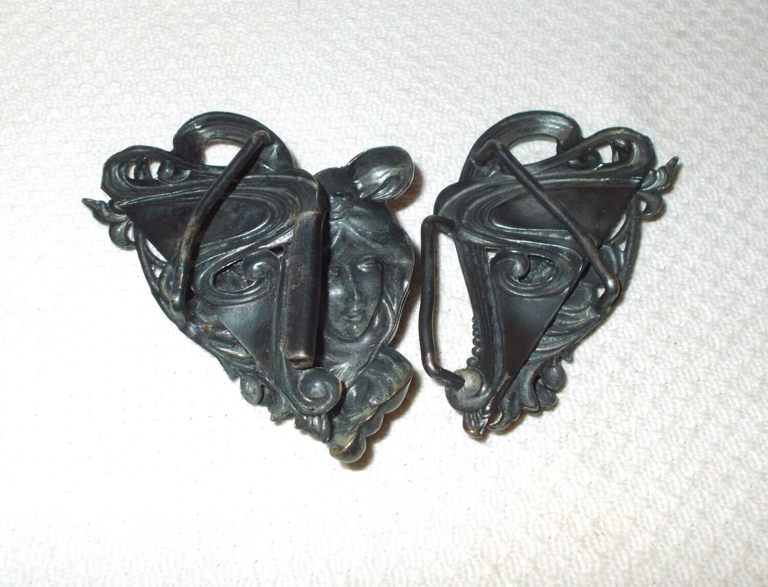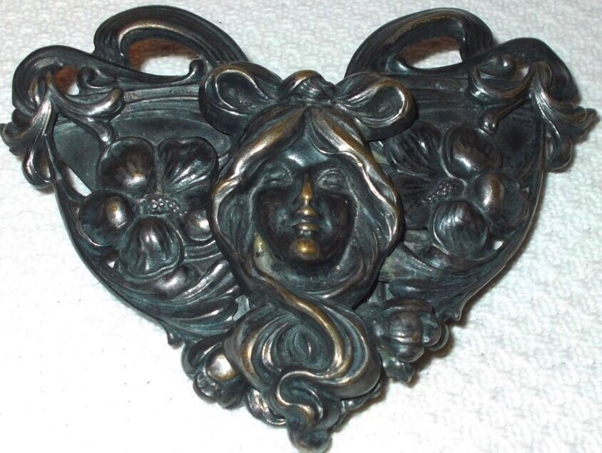 как выглядит Antique 20s Art Deco Art Nouveau Heart Victorian Lady Goddess Belt Buckle фото