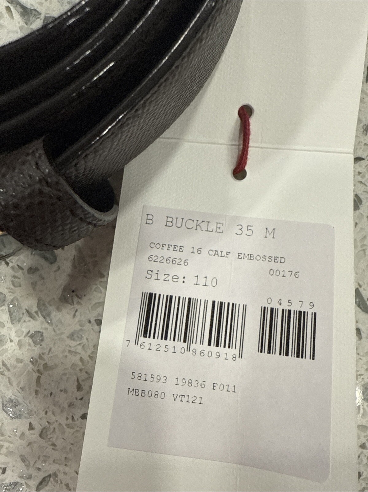 Bally B Logo Gold Men's Brown Black Leather Belt 110 Riversable Mirror Grey