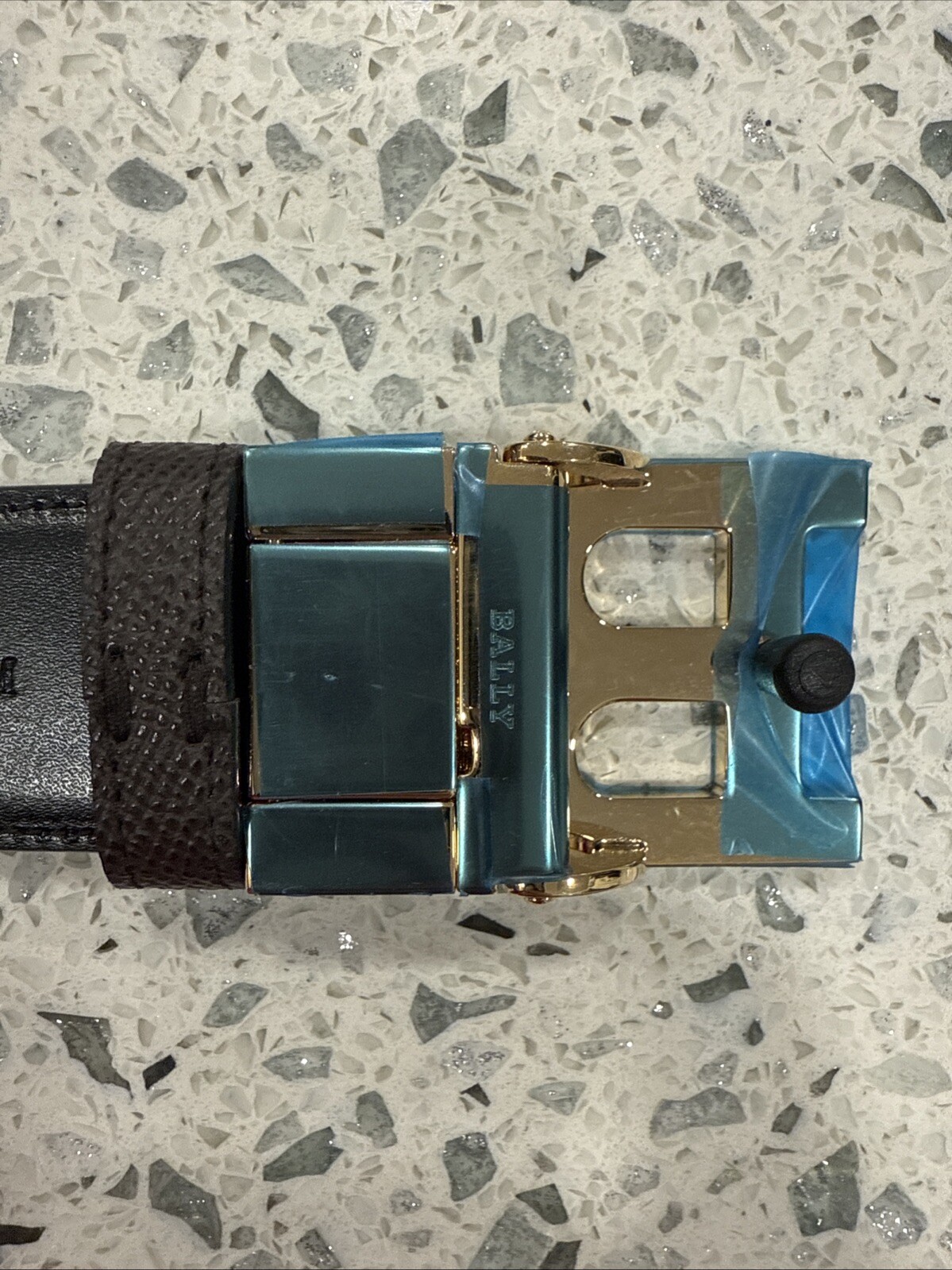 как выглядит Bally B Logo Gold Mens Brown Black Leather Belt 110 Riversable Mirror Grey фото
