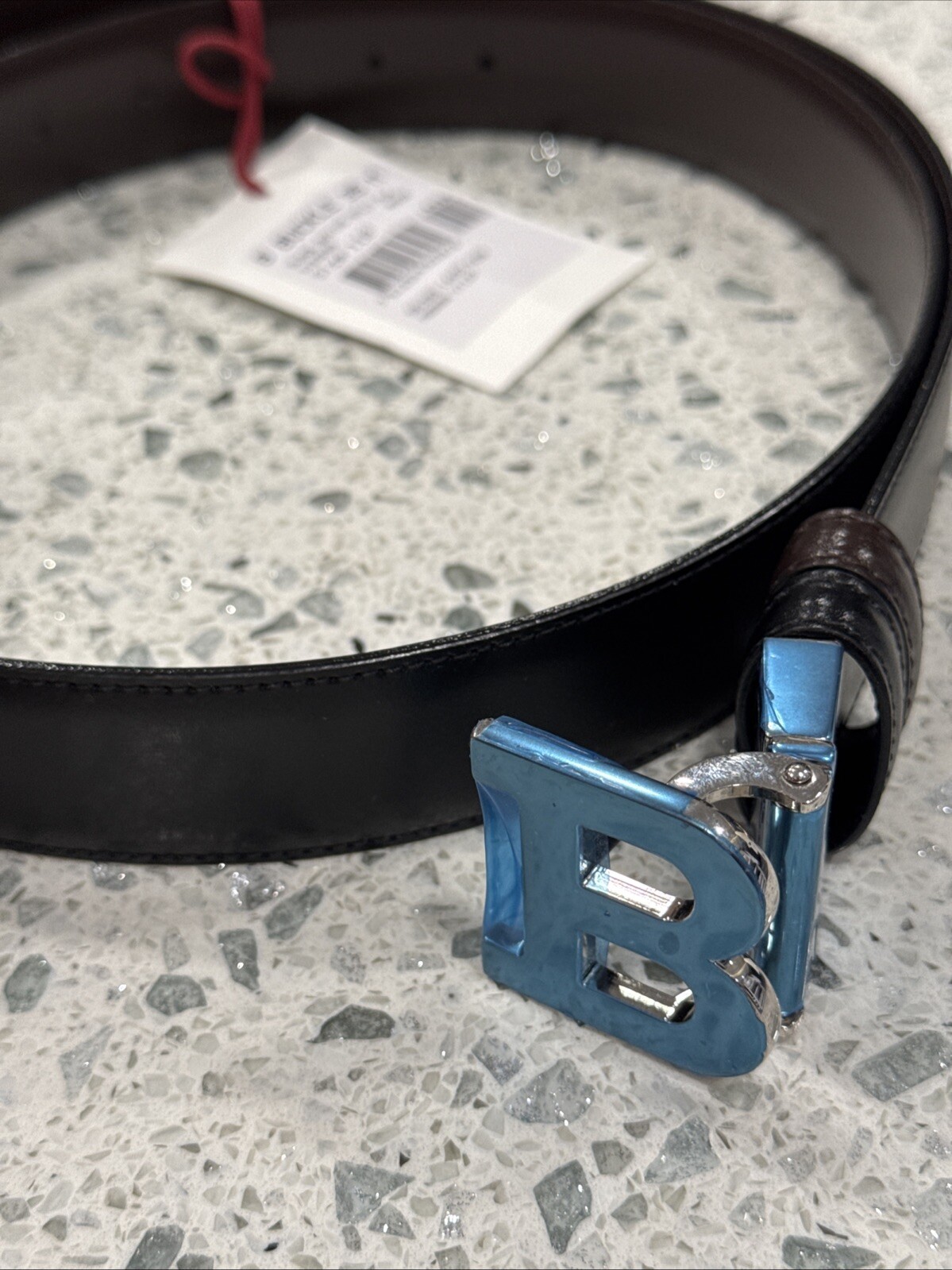 как выглядит Bally B Logo Silver Mens Brown Black Leather Belt 110 Riversable Mirror Grey фото