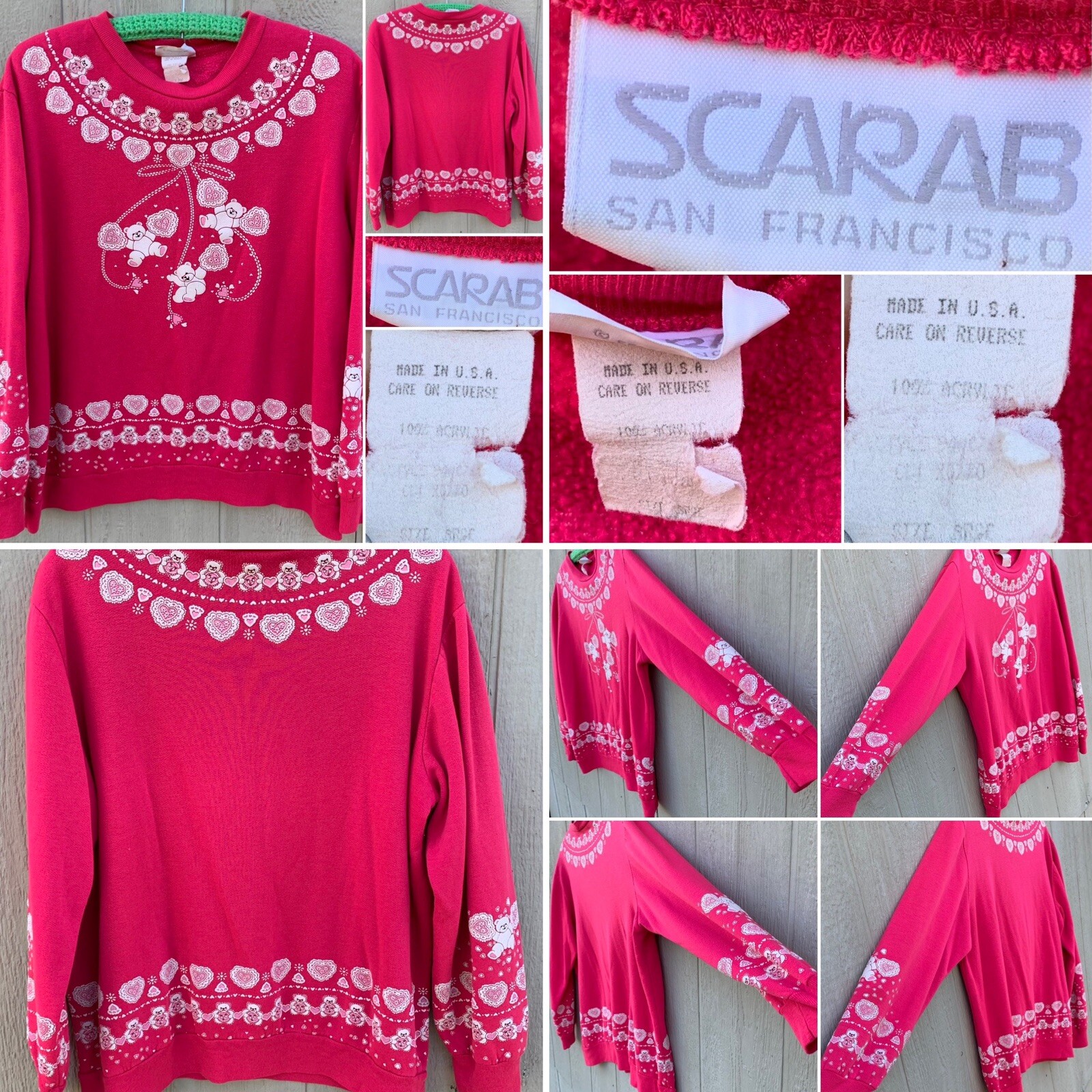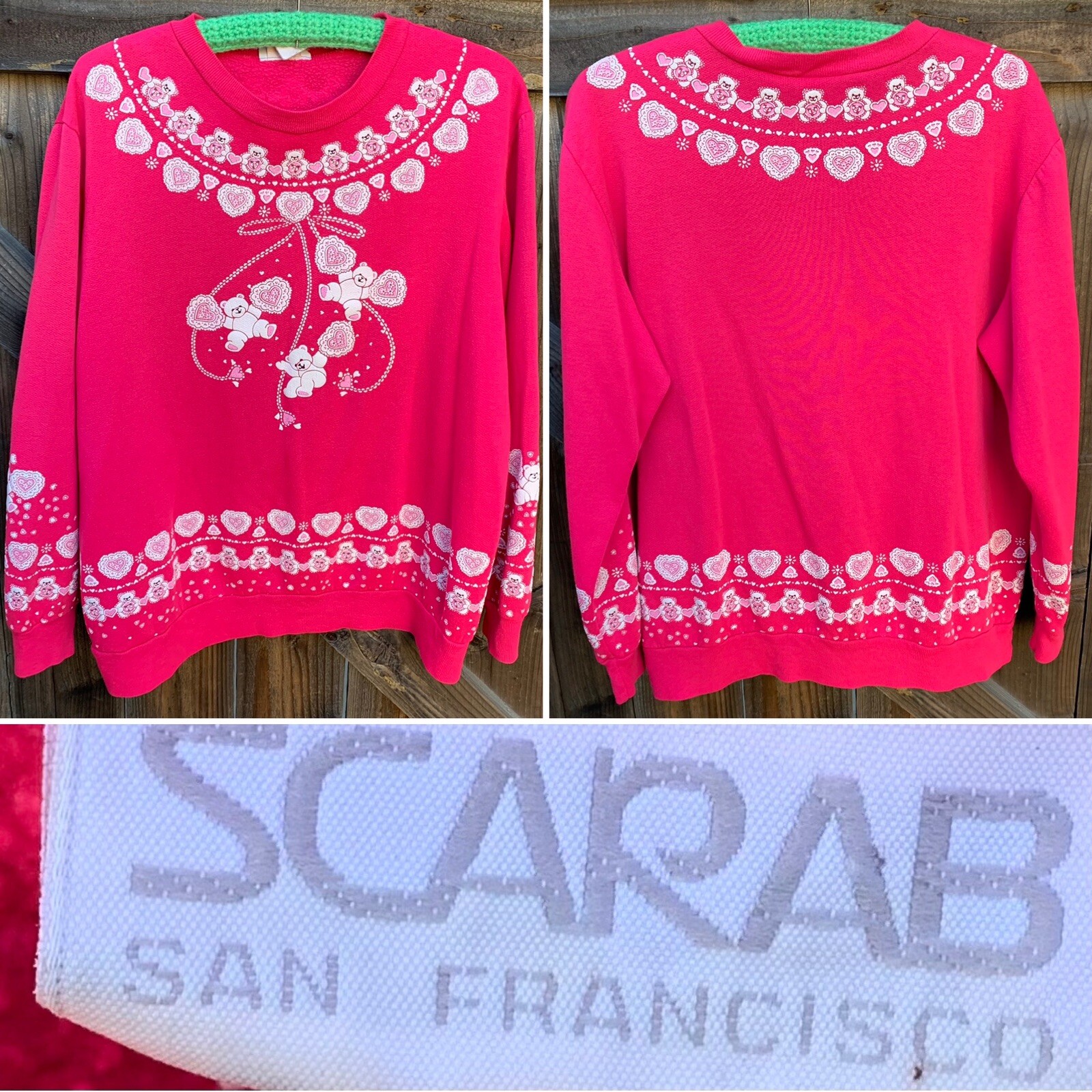 vintage Scarab San Francisco teddy bear bears hearts sweatshirt hot pink size L