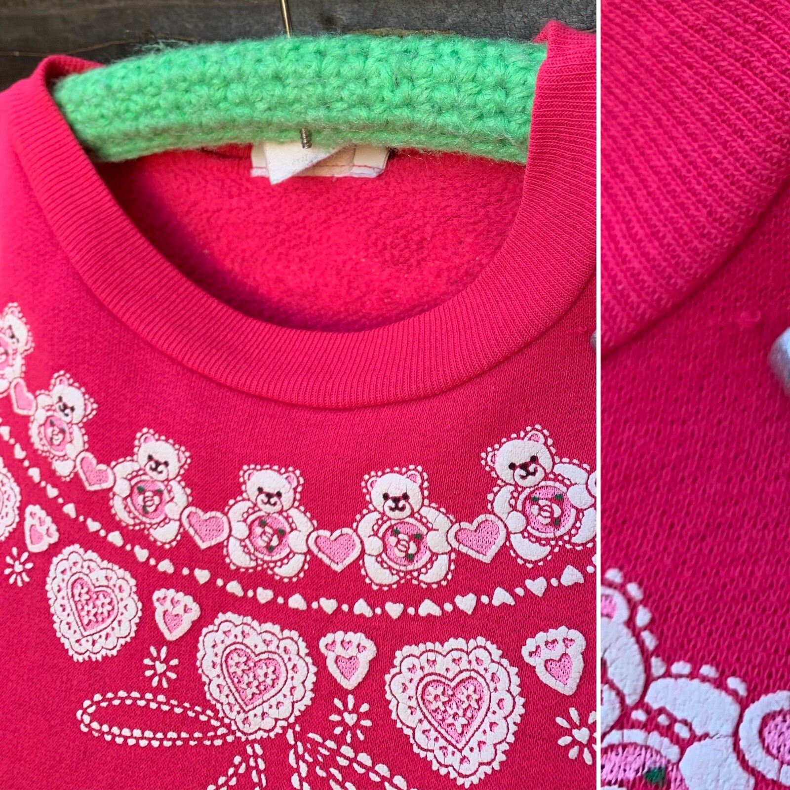 как выглядит vintage Scarab San Francisco teddy bear bears hearts sweatshirt hot pink size L фото