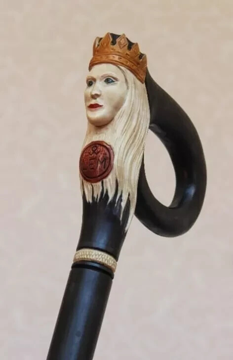 wooden walking stick hand carved Queen wooden walking cane