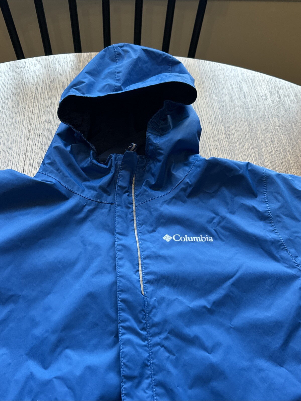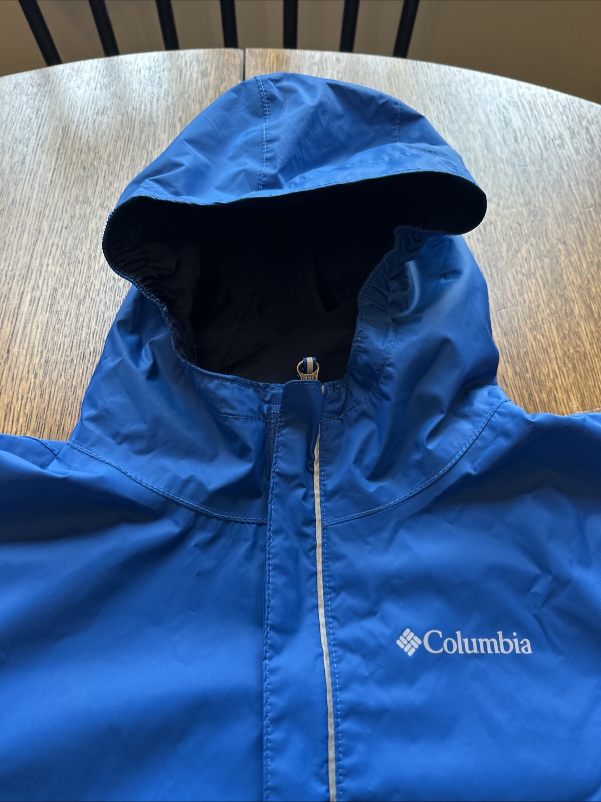 как выглядит Columbia Omni-Tech Jacket Youth Large Black Blue Full Zip Hooded Pockets фото
