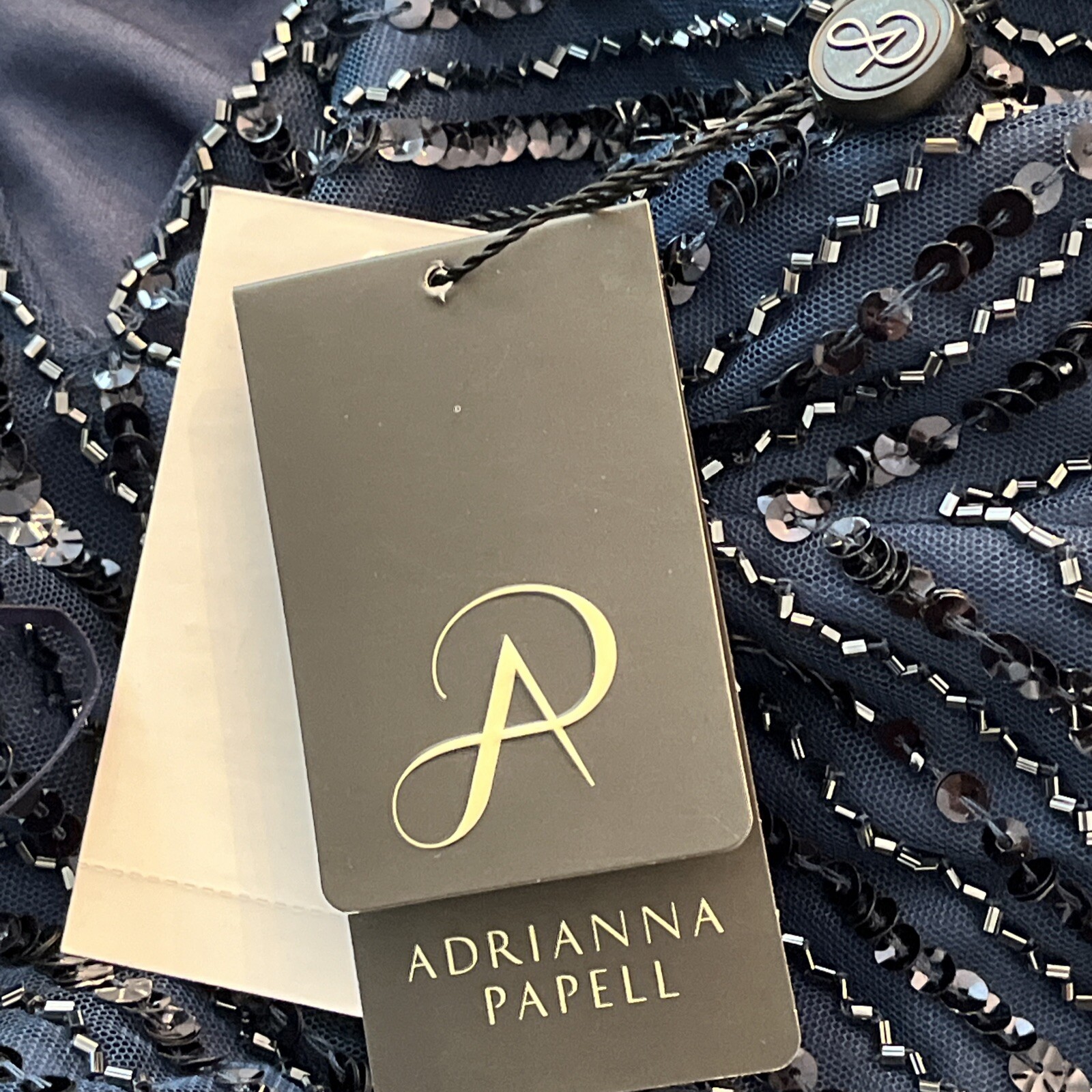 Adrianna Papell Beaded Double Strap One Shoulder Dress Deep Blue Navy Size 10