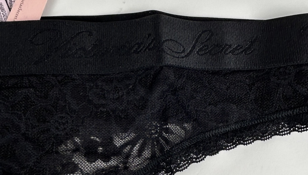 как выглядит NWT Victorias Secret Black Lace Thick Logo Band Thong Panties Sz L фото