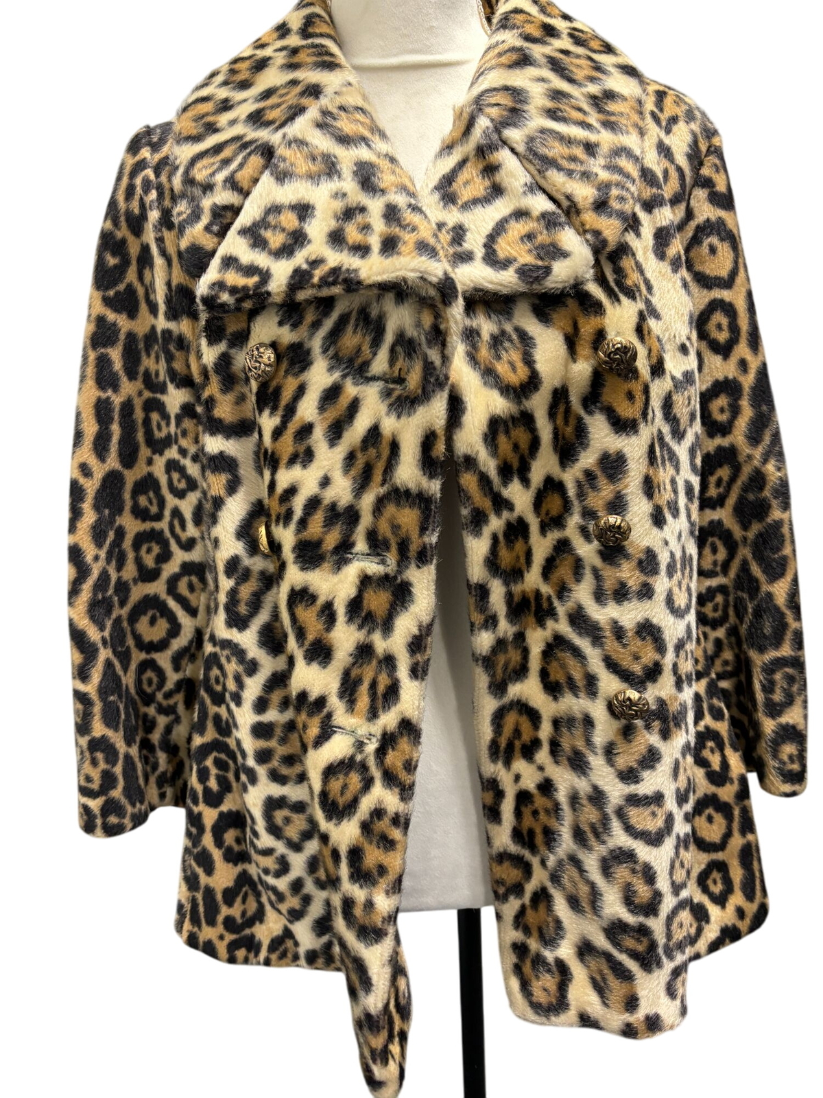 Women's Vintage 1960s Leopard Print Faux Fur Double-Breasted Coat With Decorati