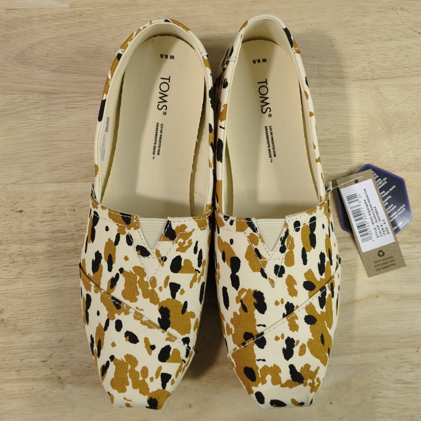 Toms Shoes Womens Size 8.5 Alpargata Flats Buckthorn Brown Abstract Cow U3