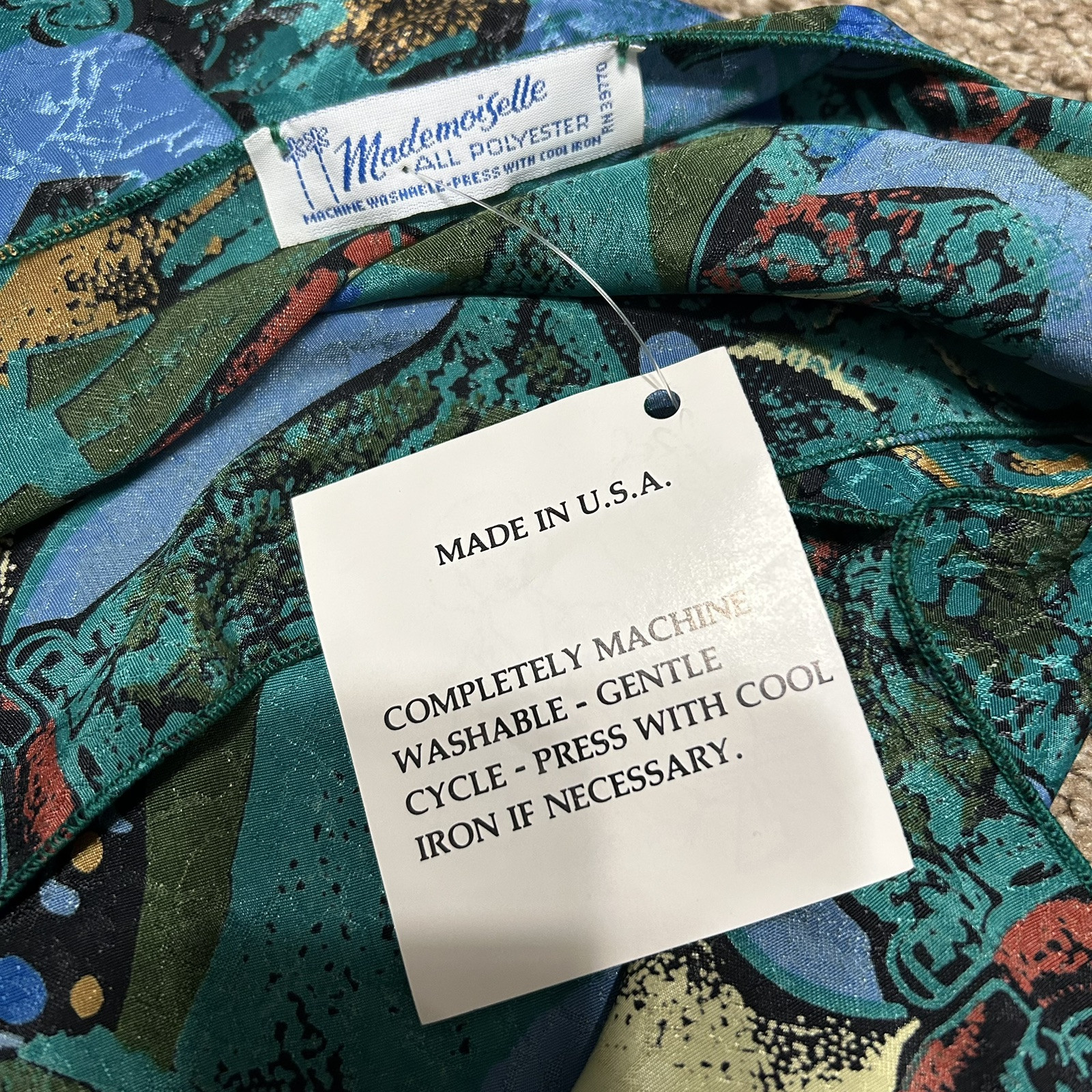 NWT NOS Vintage Mademoiselle 60 x13 Oblong Blue Green Red Scarf