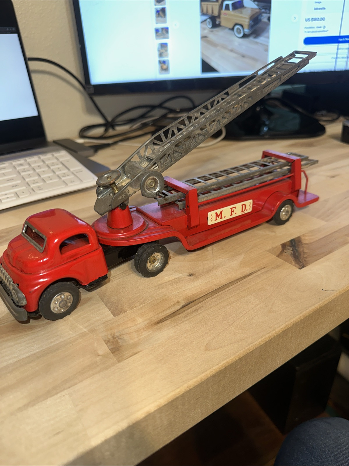 как выглядит 50 S TIN FRICTION JAPAN AERIAL LADDER FIRE TRUCK - 15 MFD - FRICTION WORKS фото