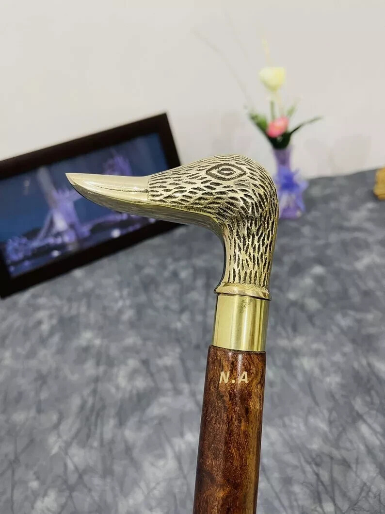 Victorian Wooden Walking Stick Solid Brass Design Duck Head Handle New Handmade