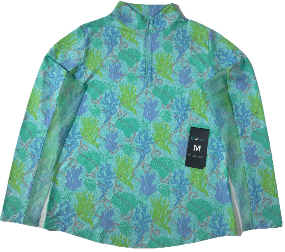 NWT IBKUL Golf Tennis 1/4 Zip Jacket Pullover S M L Green Coral Stretch UPF N8