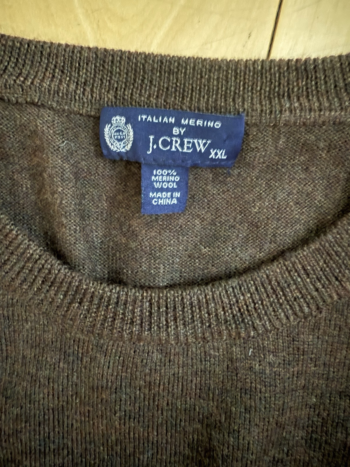 как выглядит J.crew Men s Merino Crew Neck Sweater Sz XXL Brown Wool Under фото
