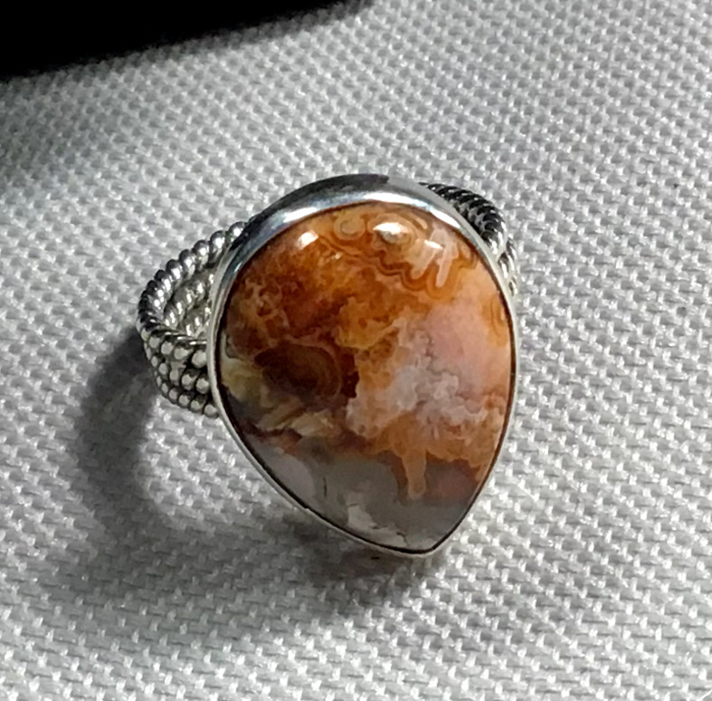 Sterling Ring Silver 925 Silver Crazy Lace Agate Gemstone Rope India SZ 7