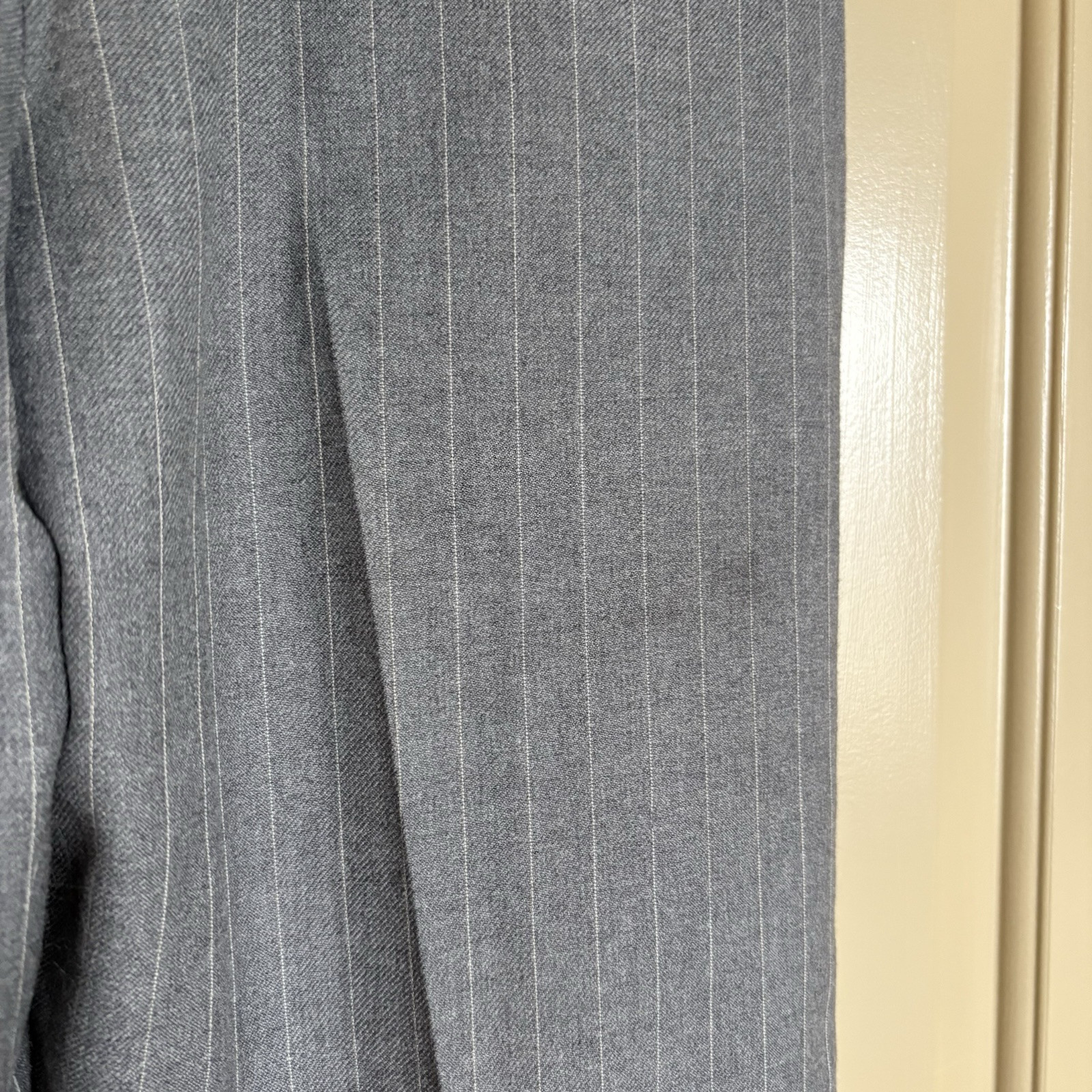 как выглядит Cacharel Vintage Women s Gray Pinstripe Pleated Front Wool Blend Trousers FR 32 фото