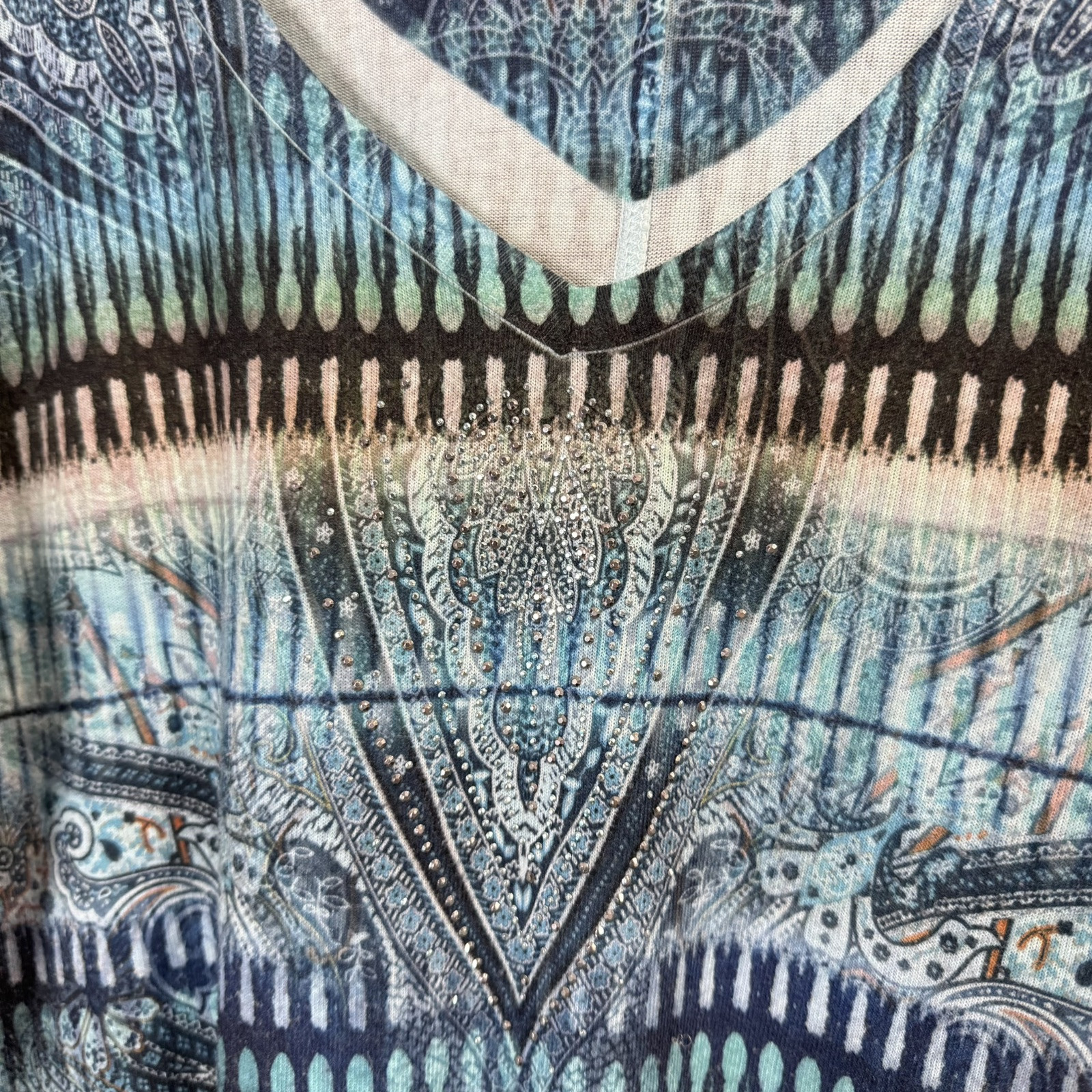 как выглядит Vintage 90s Y2K One World Unity Shirt XL Tunic Burnout Studded Sharkbite Blue фото