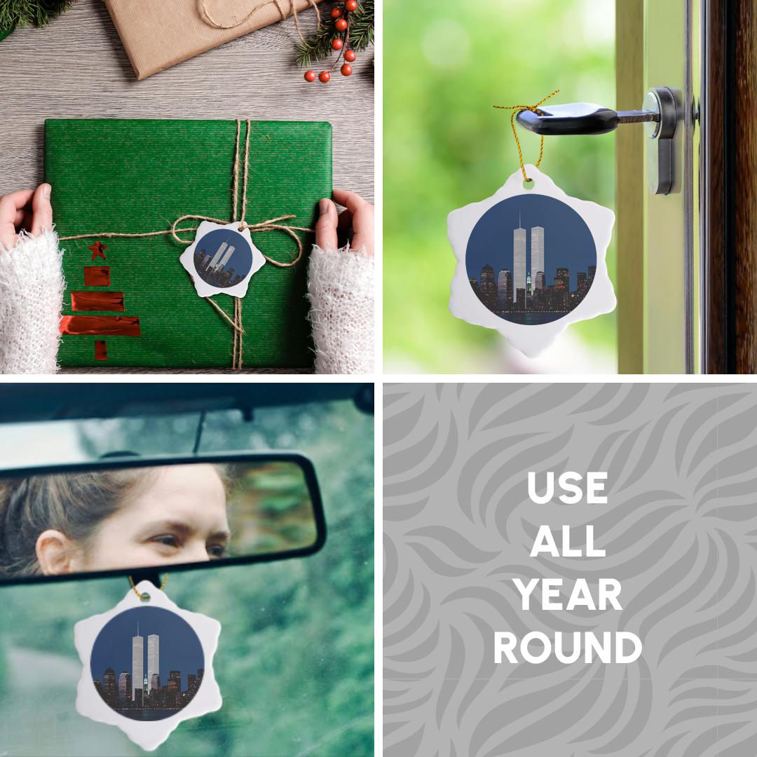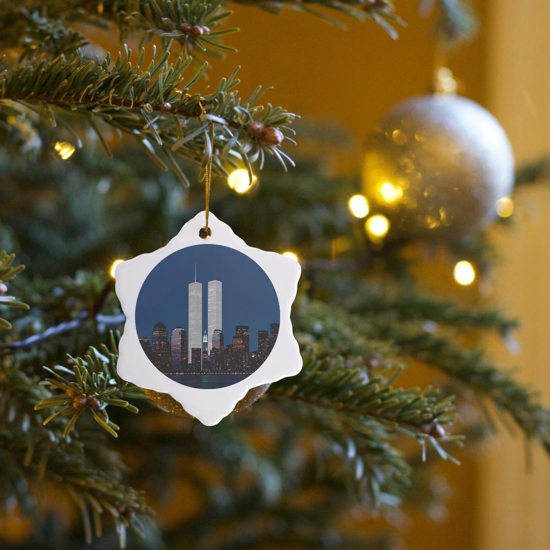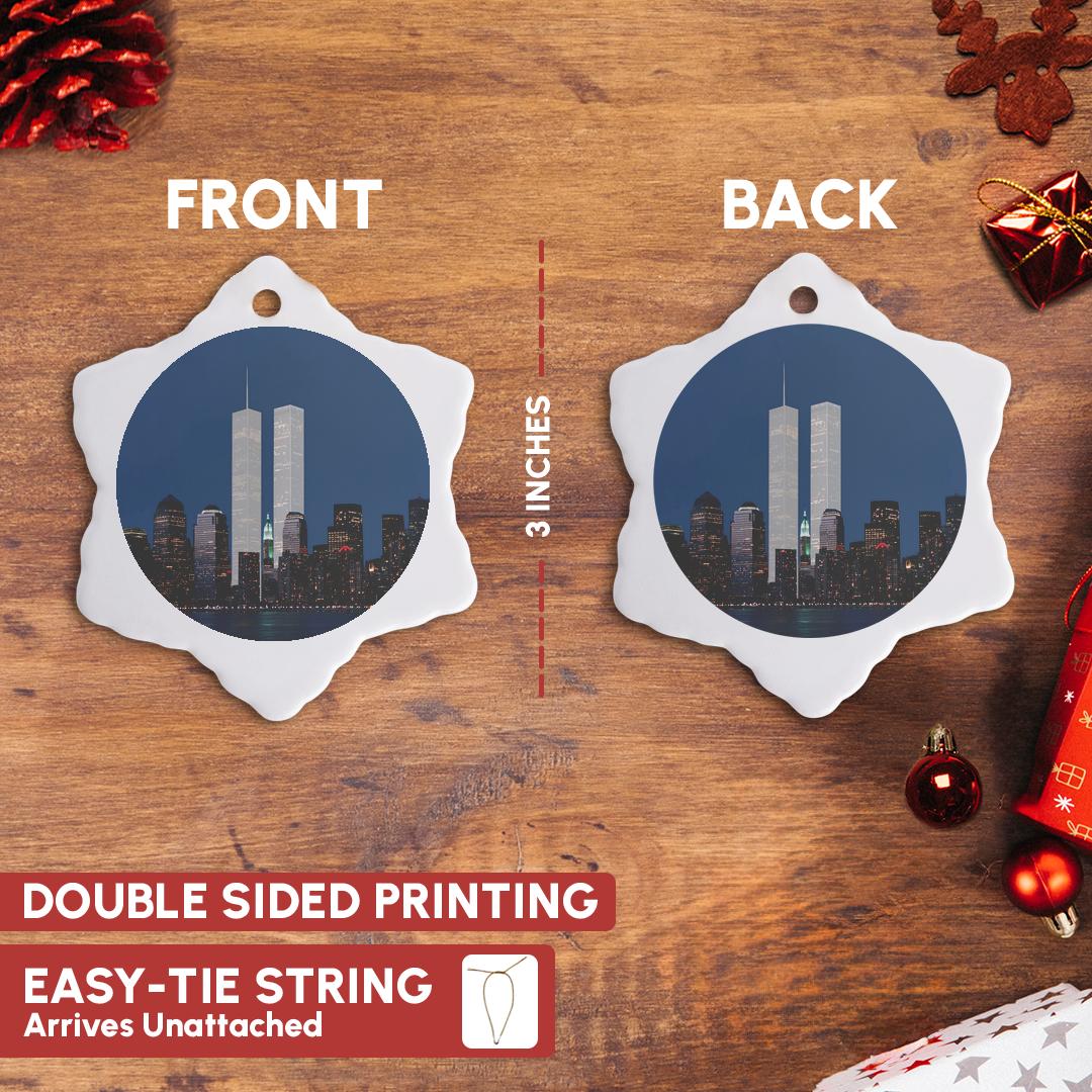 3dRose, New York City evening skyline featuring the Twin Towers, Ornament