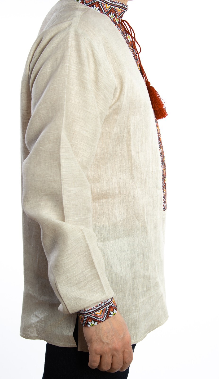 Ukrainian VYSHYVANKA for men beige orange linen hand Embroidered SHIRT Wedding