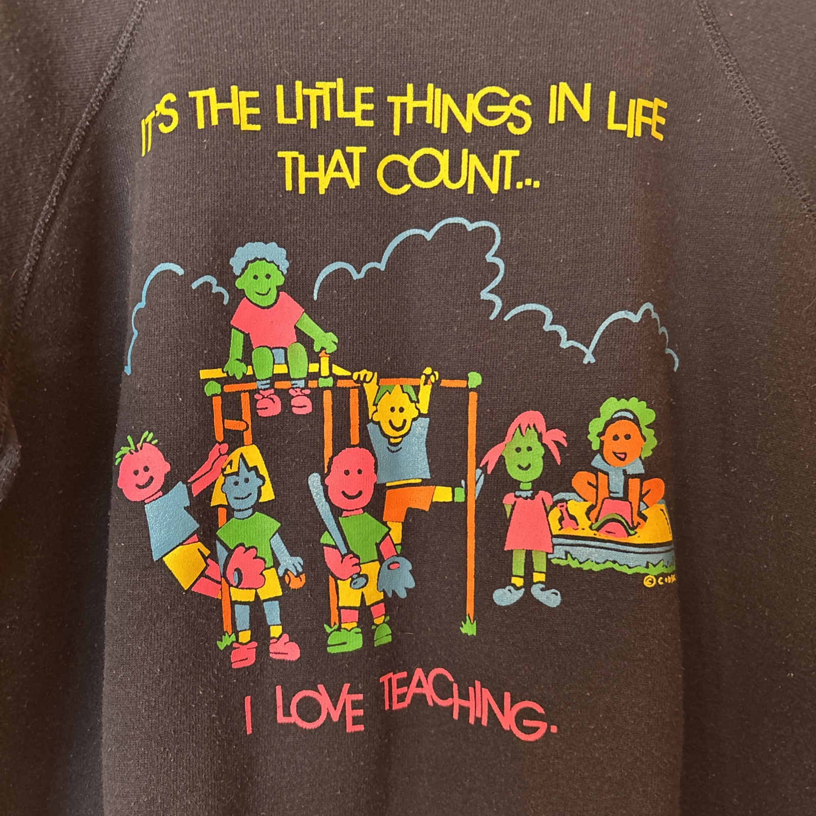 Vintage 90s School Teacher Kid Student Screen printed Unisex M Navy Sweatshirt