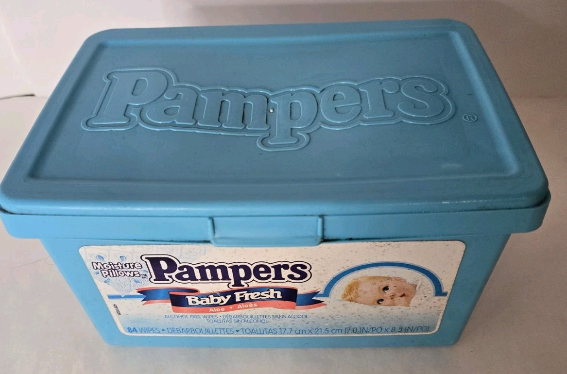 Pampers Baby Fresh Wipes Plastic Container Blue 1998 EMPTY Prop Decor