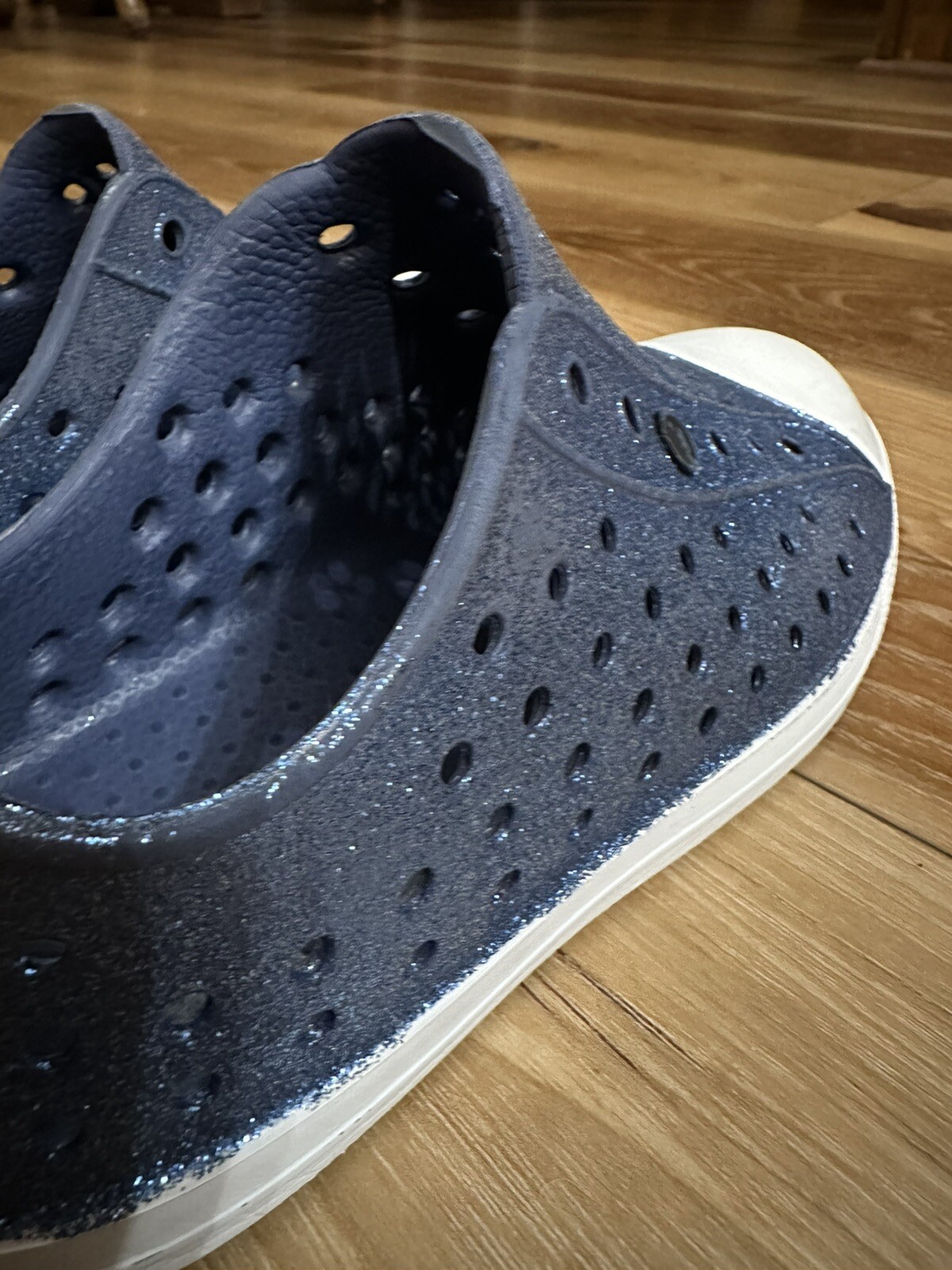 как выглядит Seannel kids Slip on water shoes sneaker blue glitter with the dino size 11.5 фото