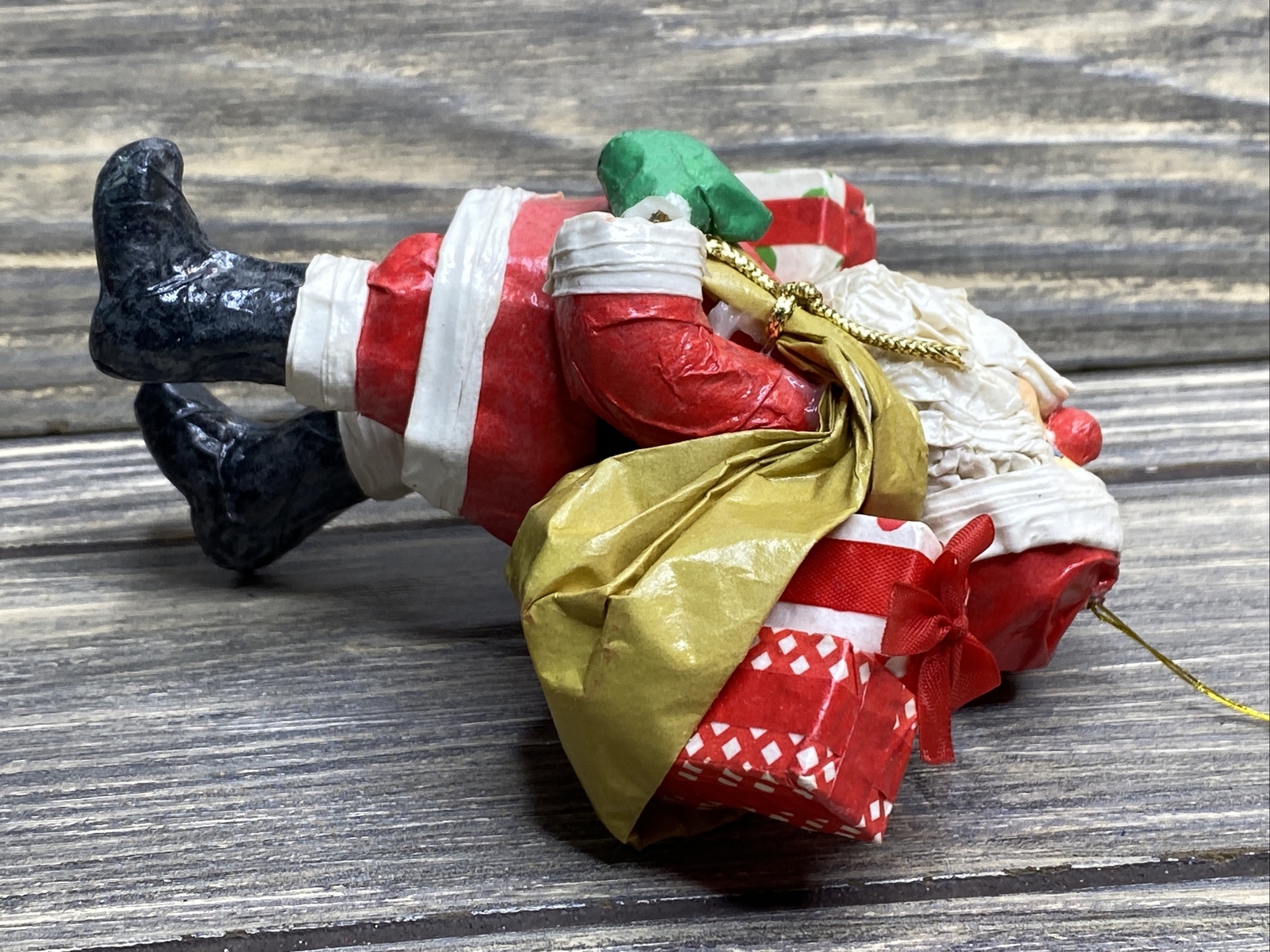 Vintage Christmas Ornament Santa Toy Bag Present Red Suit 5