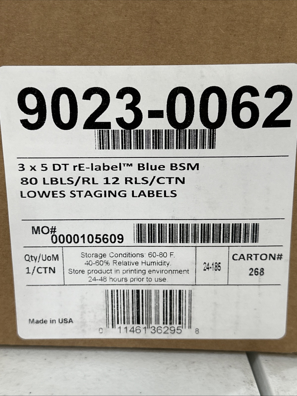 Case/960 Staging Labels 3x5, Blue , MPN 9023-0062, New 12 Rolls