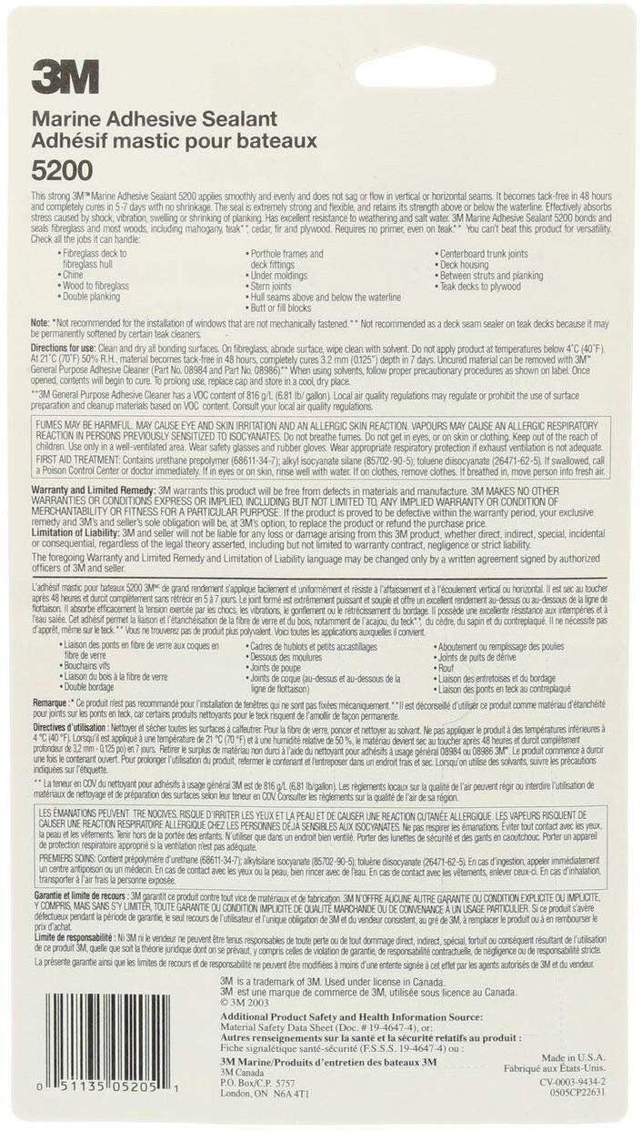3M 05206 Marine Adhesive/Sealant 5200, White / 1 oz.