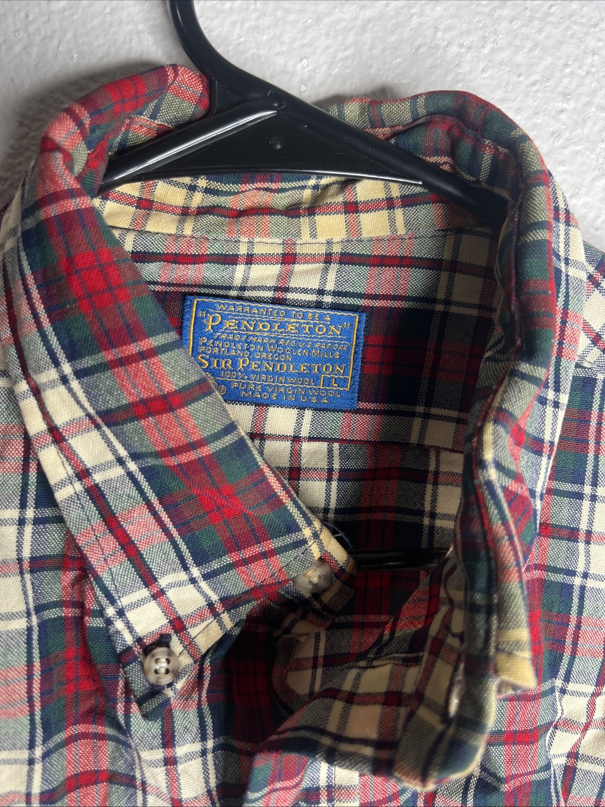 как выглядит Vintage Pendleton Mens SIZE L Plaid Flannel Shirt 100 Virgin Wool Made In USA фото