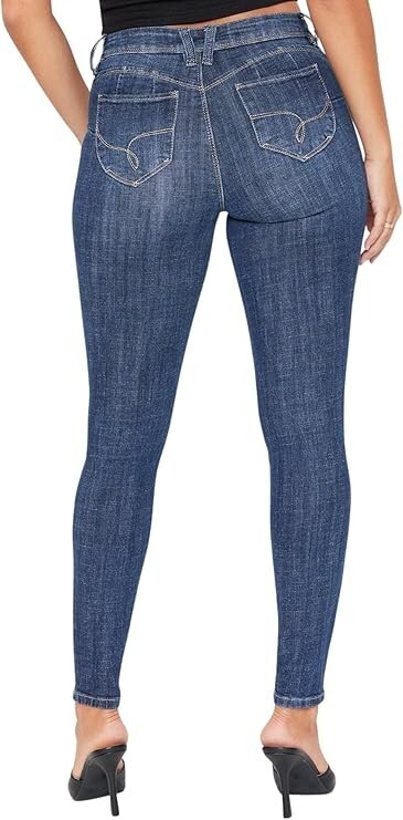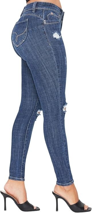 как выглядит YMI Womens Jr. Wannabettabutt Mid-Rise Skinny Jean with Distressed Details -NWT фото