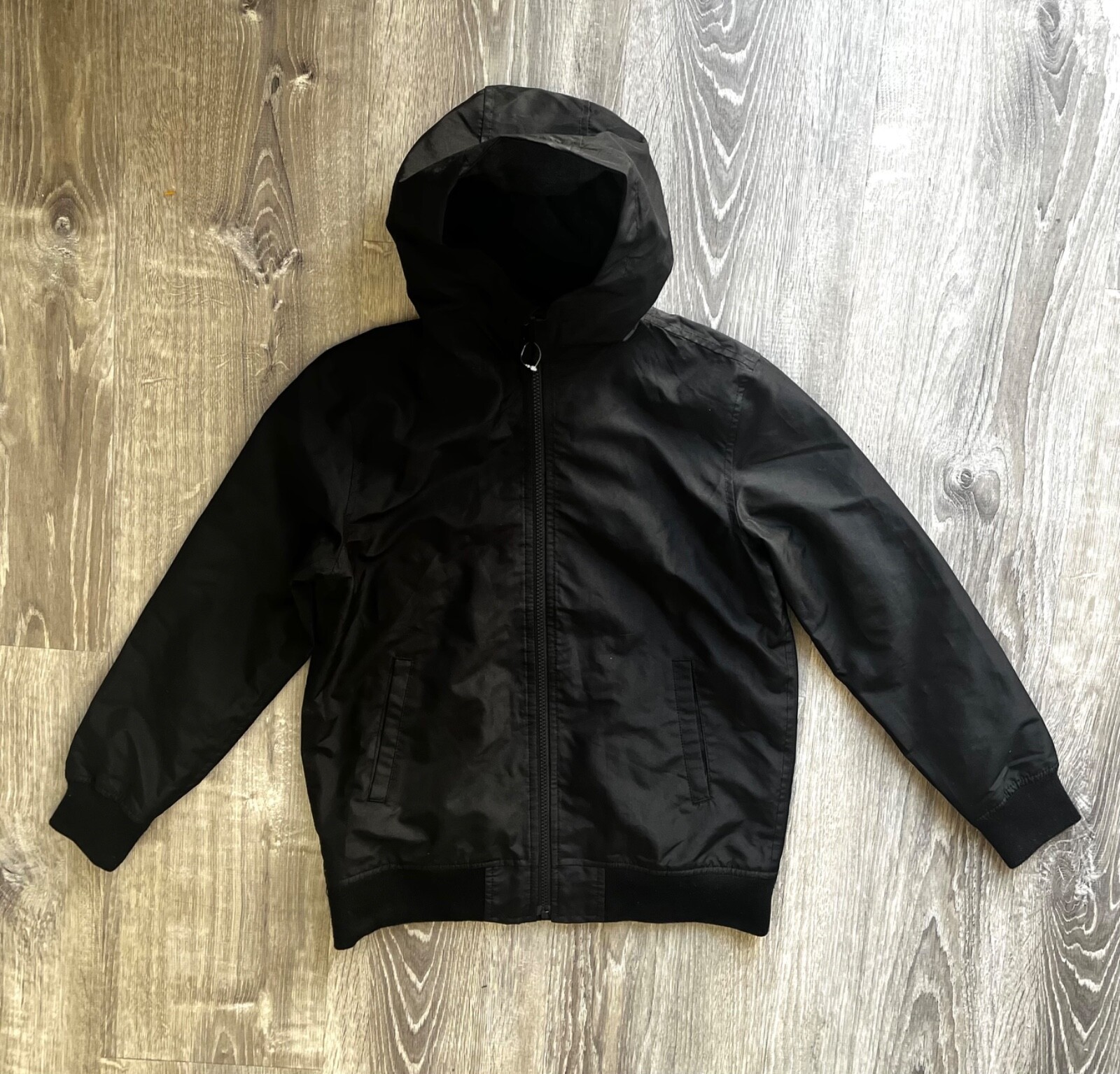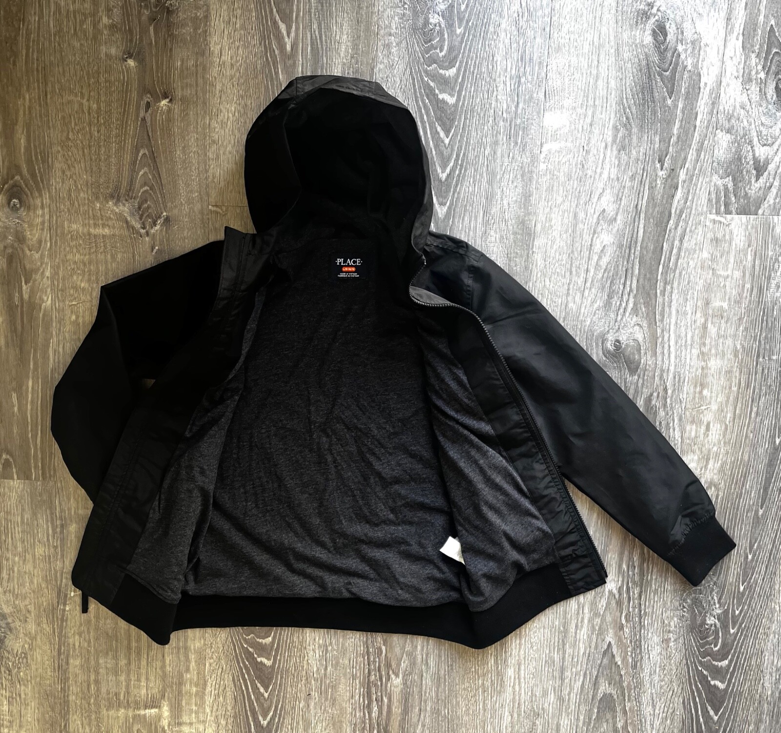 The Children s Place Boys Windbreaker Hooded Jacket in Black Size L 10-12