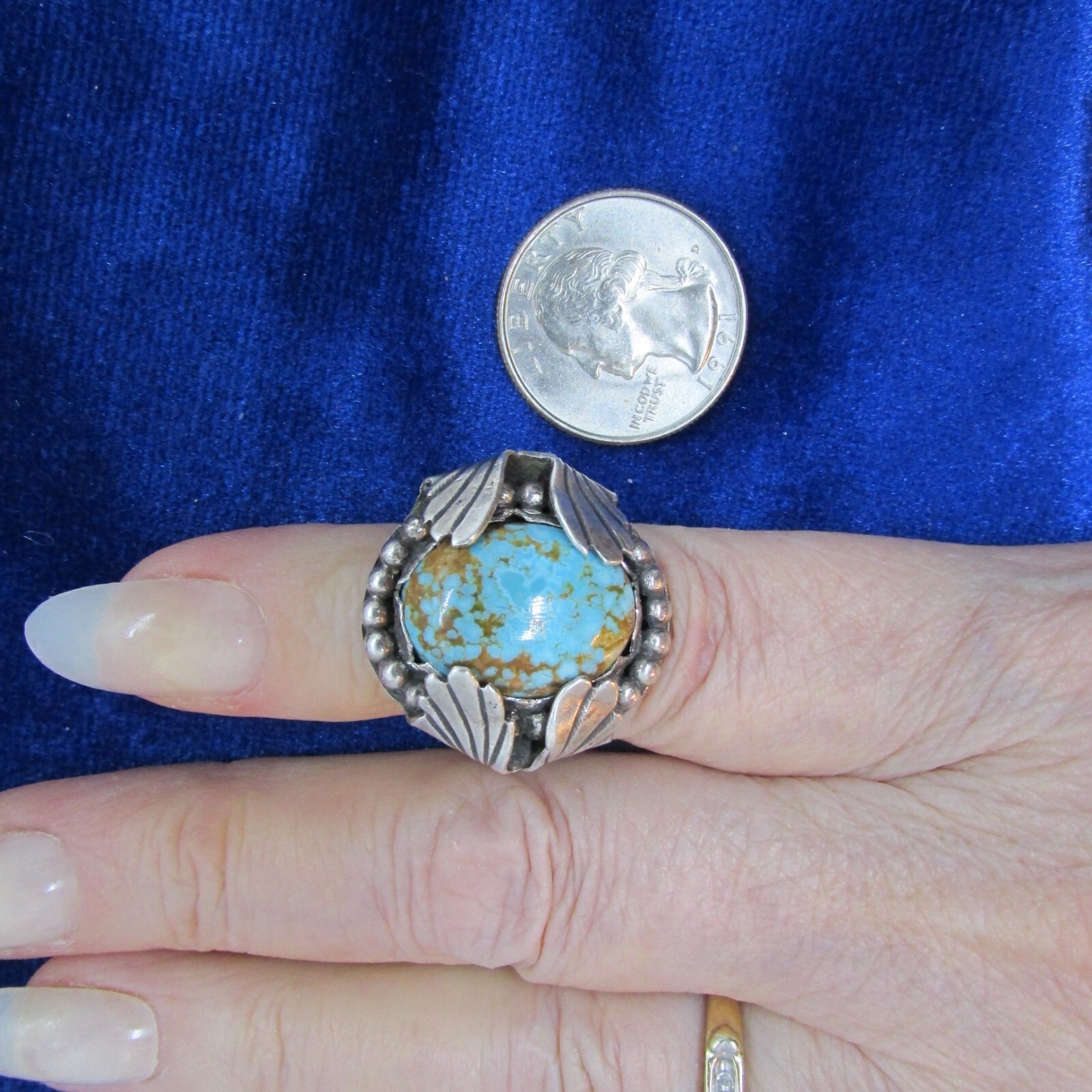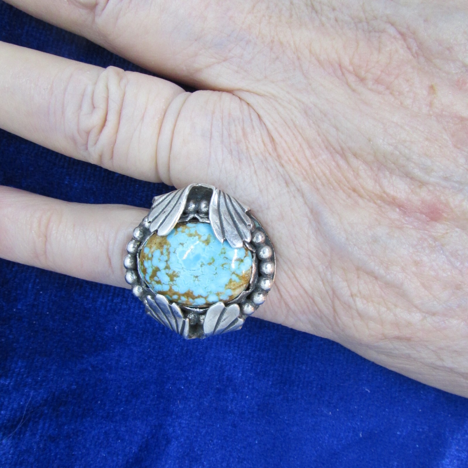 VINTAGE SOUTHWEST N A 8 TURQUOISE RING STERLING SIZE 5 1/2 TO 6