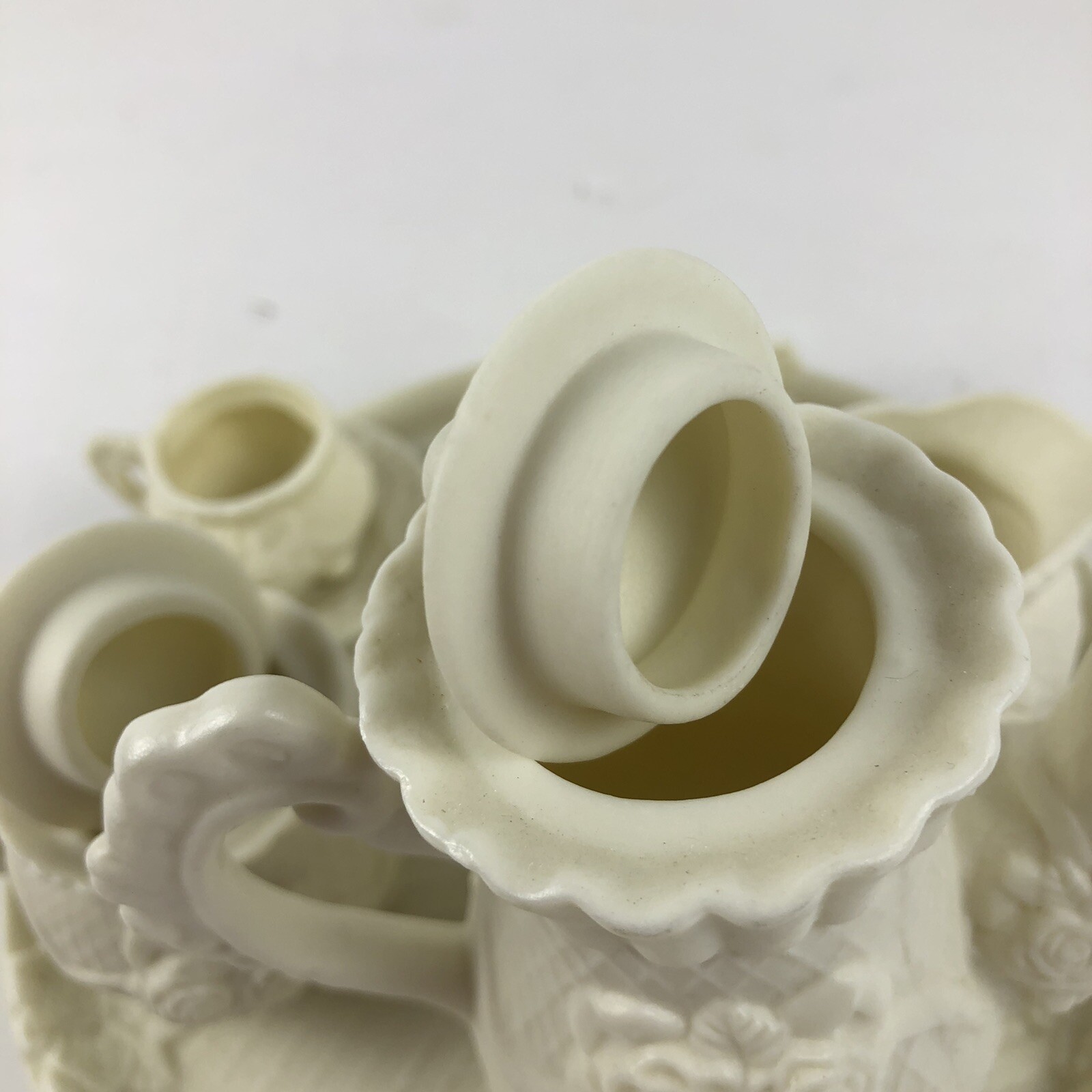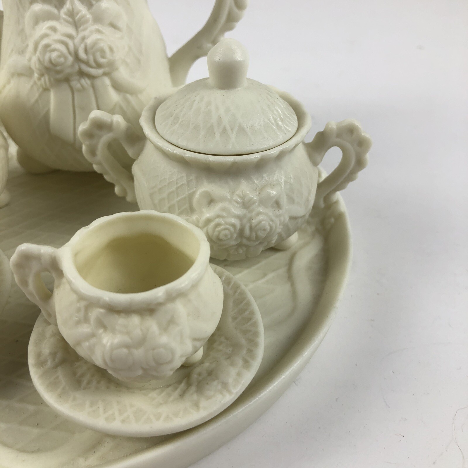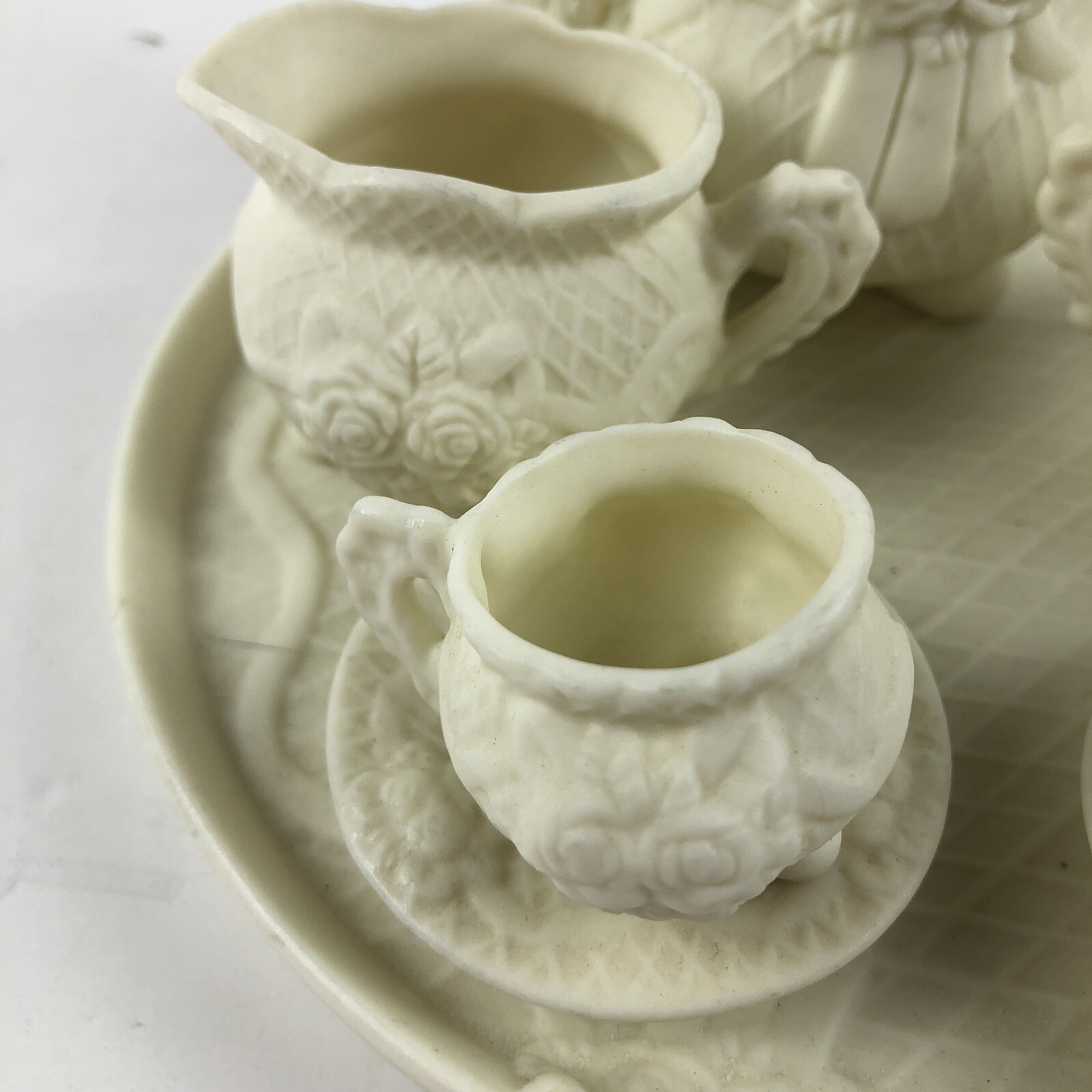 Vintage Miniature White Porcelain Bisque 10 Piece Tea Set with Roses