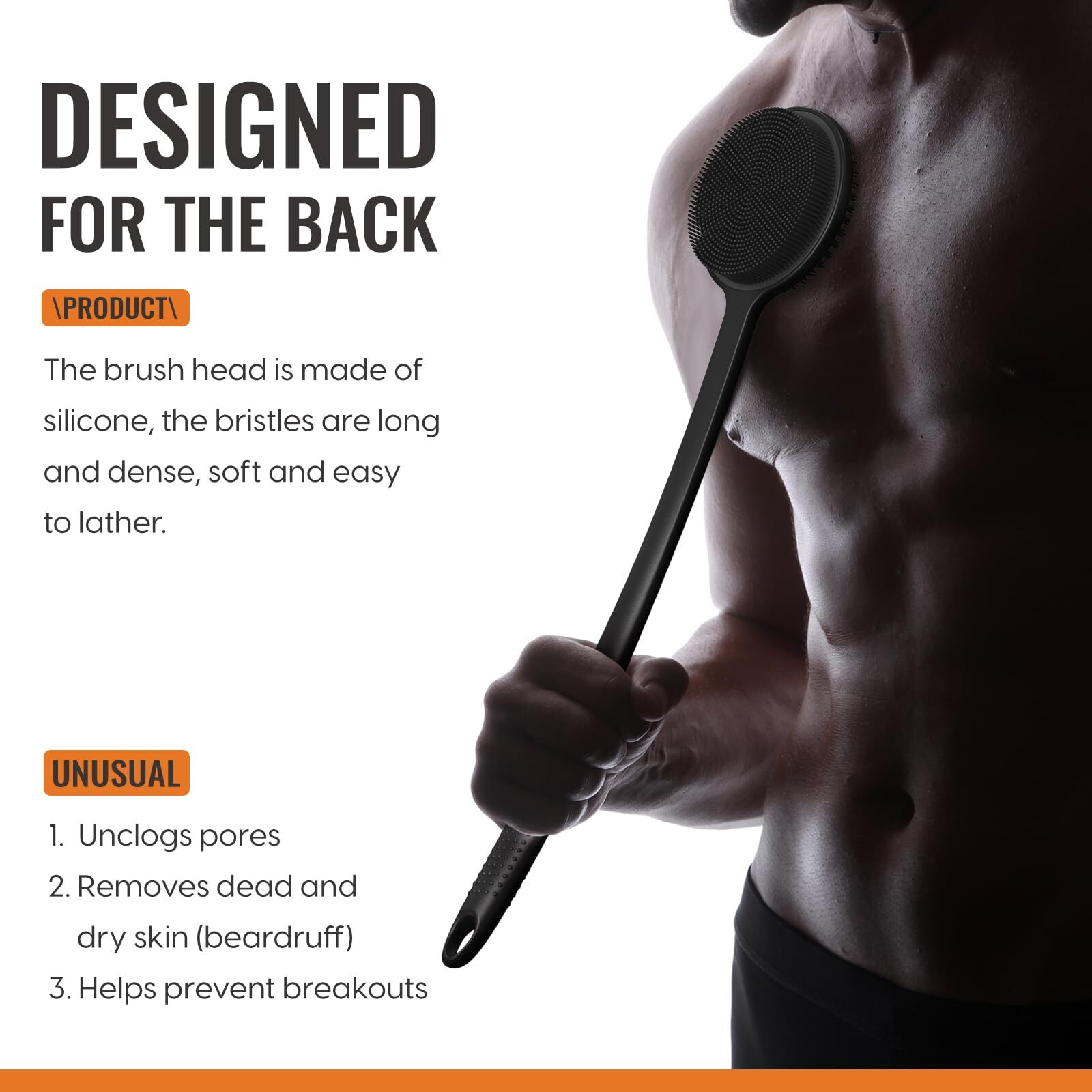 Silicone Back Scrubber For Shower 17in Lengthen Long Handle Body Brush Double Si