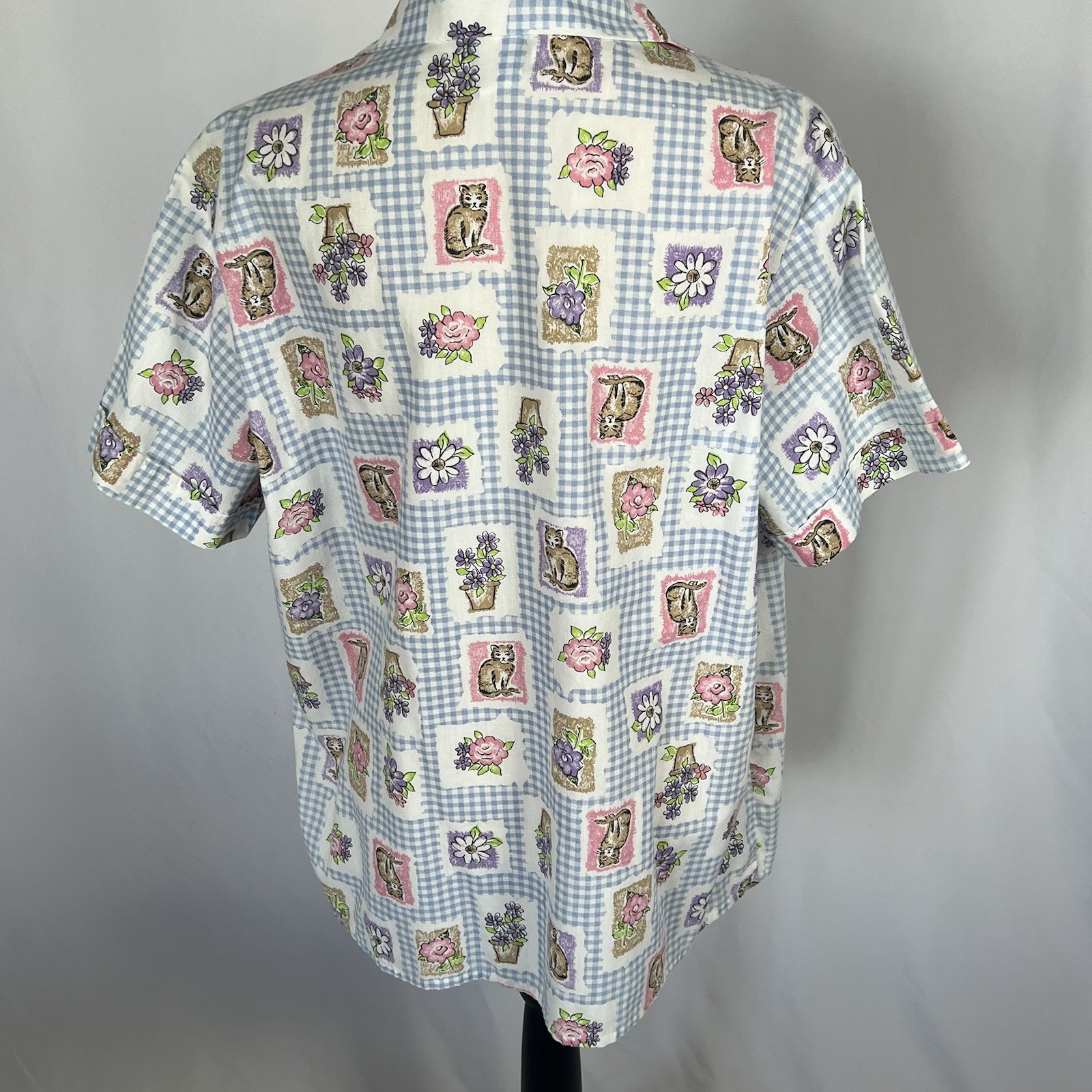 Ladies Scrub Top CATS Floral Print Patchwork Extra Large XL Improved Living