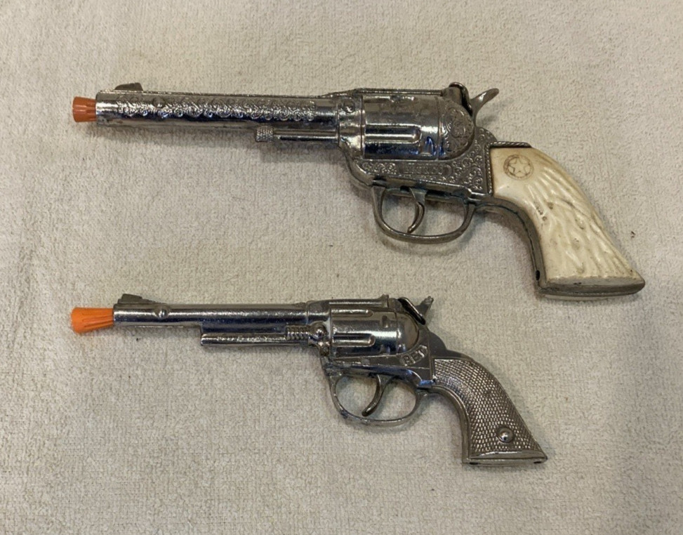как выглядит Lot of 2 Vintage Halco Bronco Pet Cowboy Toy Cap Guns - WORKING фото