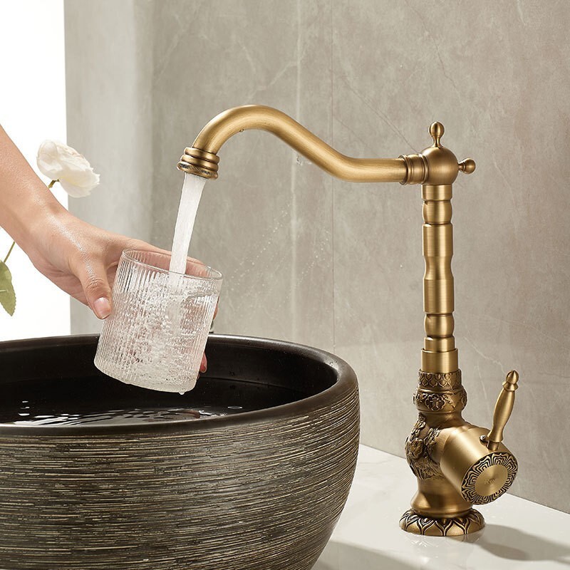 Antique Brass Bathroom Vessel Faucet Single Handle Kitchen Sink Faucet Mixer Tap
