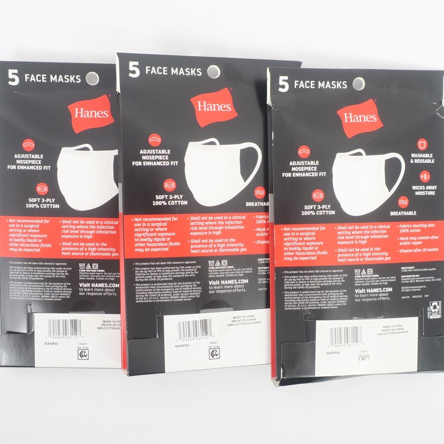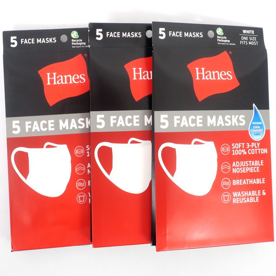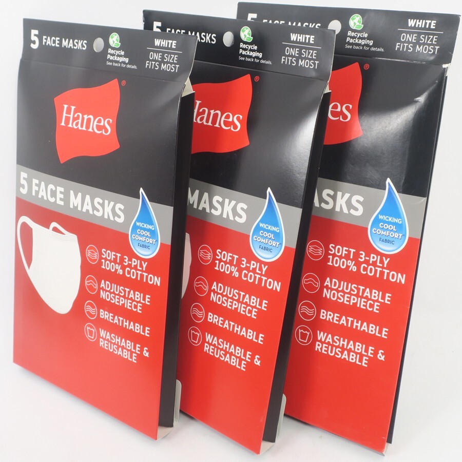 Hanes, 5 Pk Face Masks, 100 Cotton, Reusable, Washable, One Size Fits Most 3