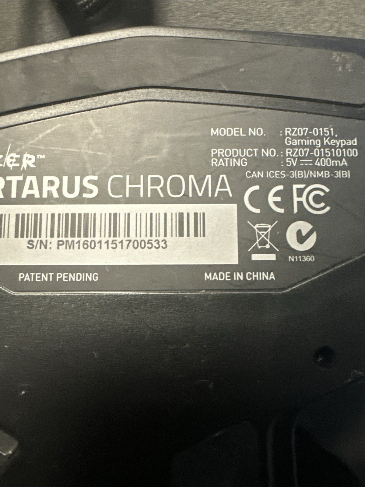 Razor Tartarus RZ07-0151 PC Gaming Keyboard Used Working