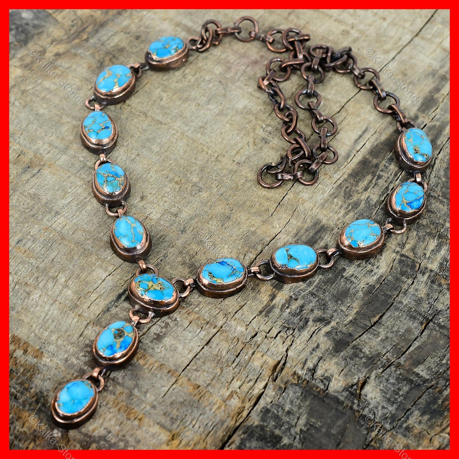 как выглядит Copper December Copper Blue Turquoise Stone Electroformed Chain Necklace Jewelry фото