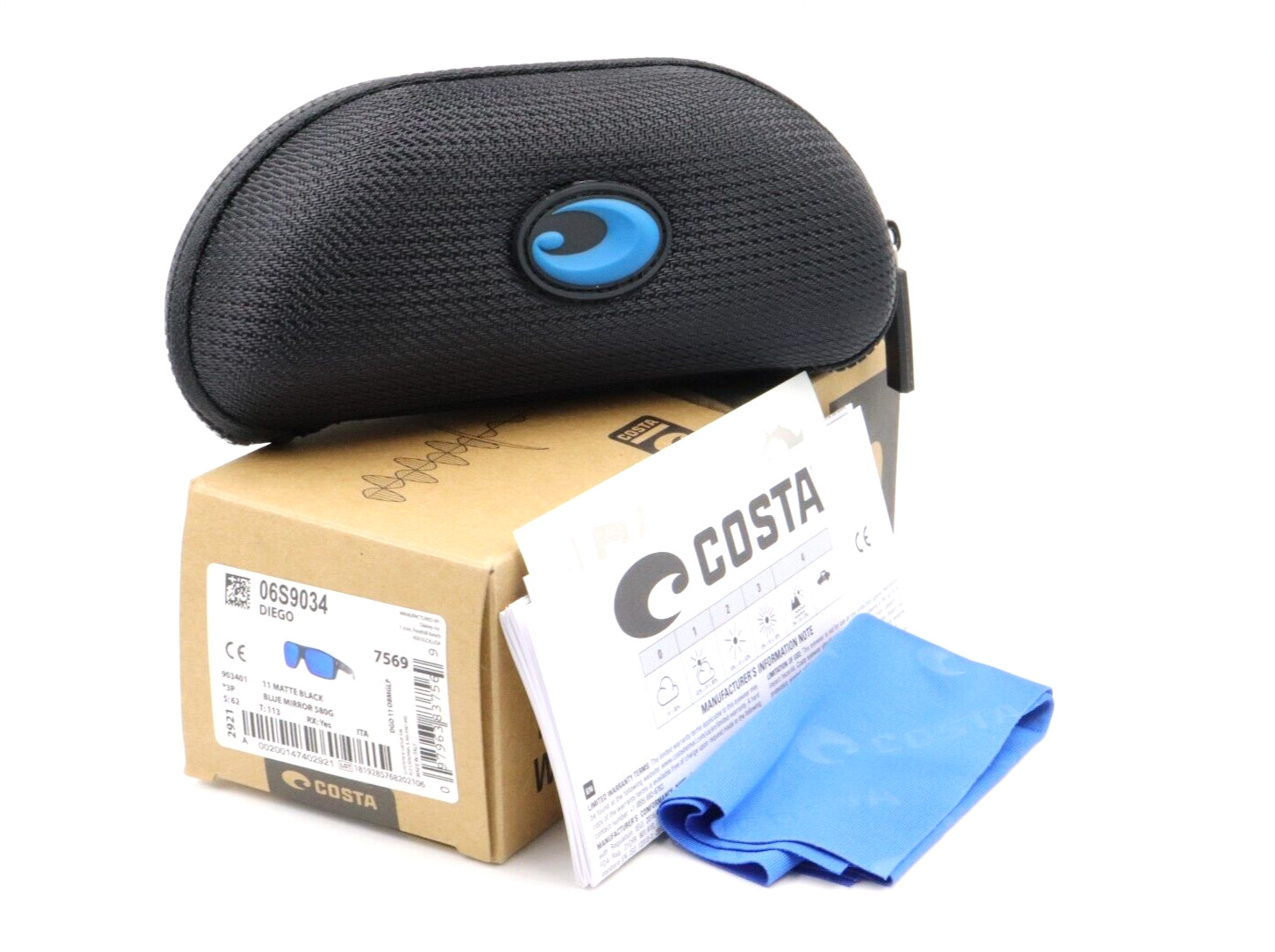 Costa Del Mar DIEGO 11 Matte Black Blue Mirror 580G Sunglasses 06S9034 90340162