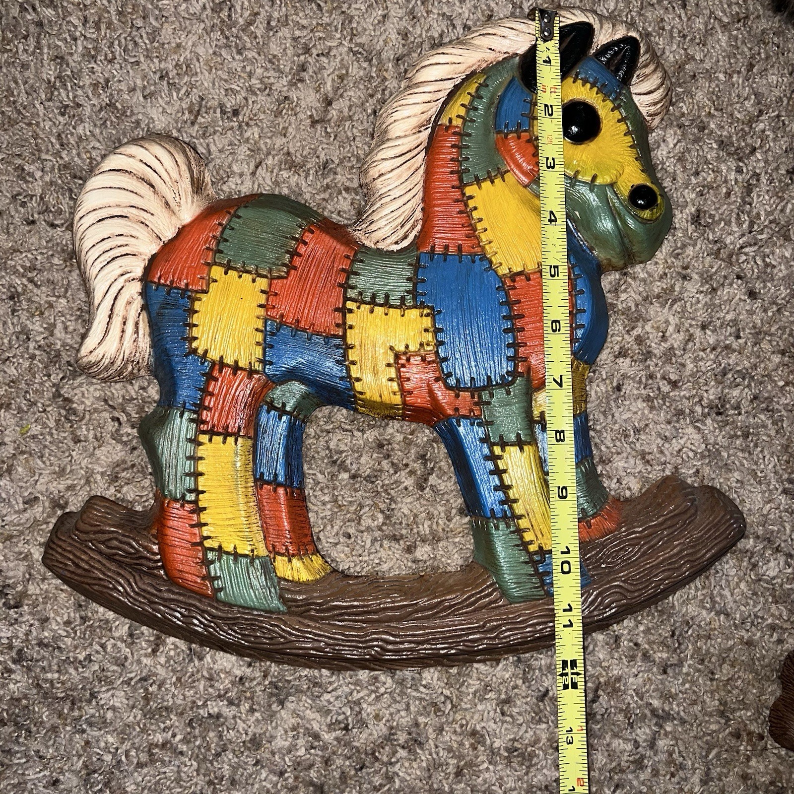 как выглядит Vintage Patchwork Wall Art Decor Rocking Horse Teddy Bear Hangings Baby Children фото